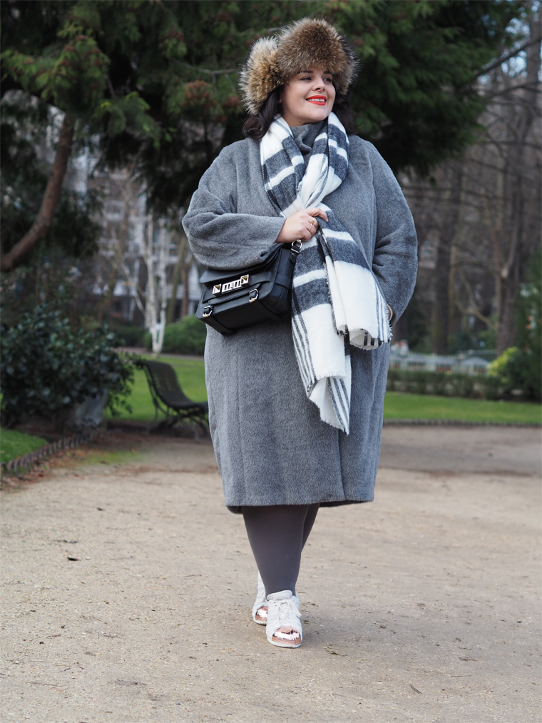 Cette fourrure te va à ravir ça te donne un petit air de poupée russe ( et pour moi c’est un vrai compliment je t’assure !!!) Je souhaite également connaître la marque de ton collant gris que tu portes sur cette tenue car moi qui adore me mettre en robe j’ai du mal à trouver des collants de couleur ! et puis une dernière chose j’adore tes baskets je n’ai jamais osé en porter avec mes robes mais au fur à mesures que je vois tes looks baskets+robes je suis de plus en plus fan !!! Merci pour tout. J’espère pouvoir te revoir un jour. bisous marion