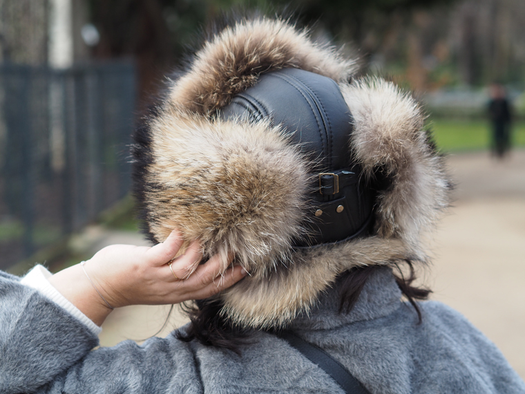 Quelle tenue superbe et confortable, j’aime tout ! la chapka trop jolie et douillette et les sneakers trop top ! il va vraiment falloir que j’essaie moi même de porter ce style de chaussures avec une jupe ou une robe !