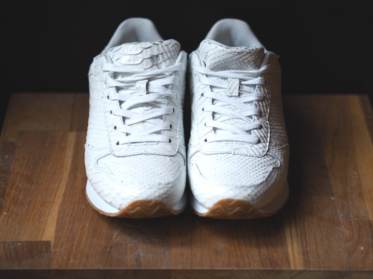 Je flânais dans le rayon accessoires, lorsque mes yeux sont tombés sur ces baskets façon python blanc. J’ai regardé l’étique par pure curiosité, han du cuir!