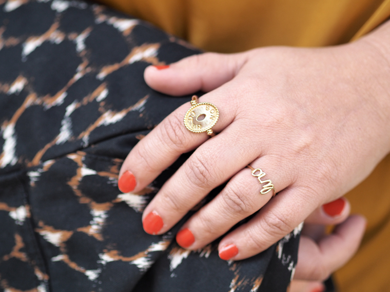 I wear my ring a beautiful reversible index of a brand new completely handmade jewelry in Paris: Les Poinçonneurs. I will soon hear about it but all their rings are available in very large finger towers, the advantage once again, to appeal to artisans.