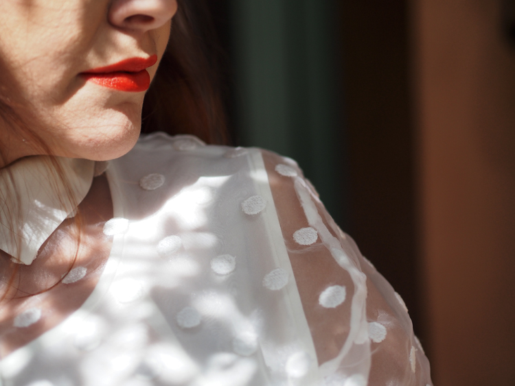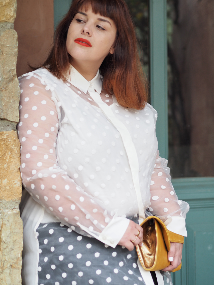 Oh j’adore le côté vaporeux du chemisier, les pois y ajoutent encore.