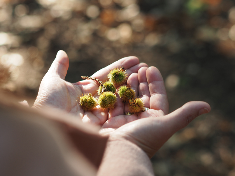 Pour ta petite devinette je dirais vert tendre et marron comme les petites châtaignes que tu tiens dans les mains.