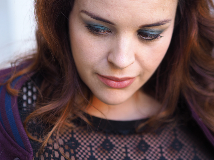 My eyes are matched to the tone of my skirt, a first for me during the day, but finally I especially like the effect with nude lips.