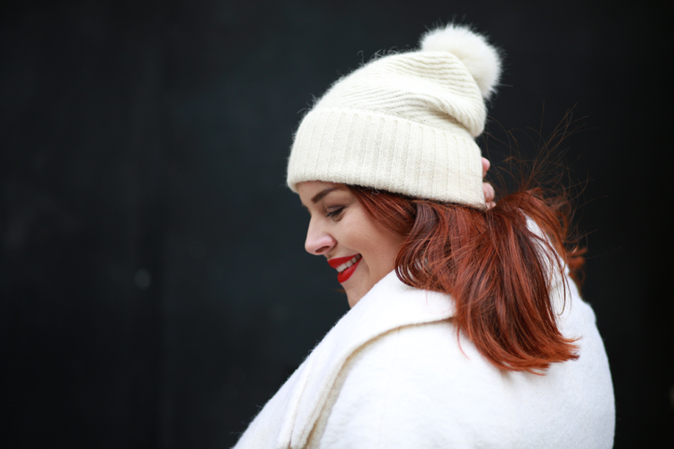 Hihi trop chouette la photo avec le chat, qui respire la joie de vivre ahem…! Très joli look! J’aime beaucoup le manteau et le bonnet blancs, ça fait tout doudou!
