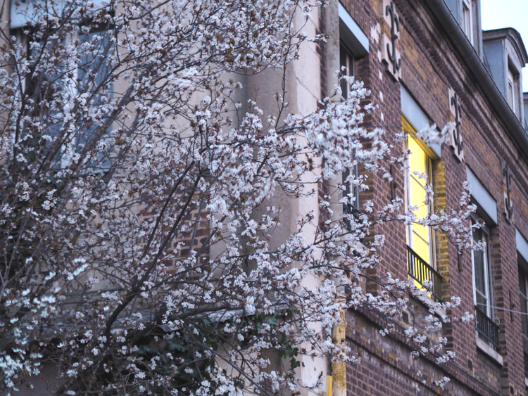 Ca fait bizarre de voir le look hivernal et les arbres en fleurs en même temps. Je sens que tu vas pouvoir porter ta veste encore un moment.