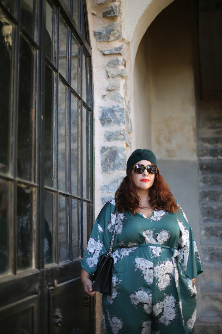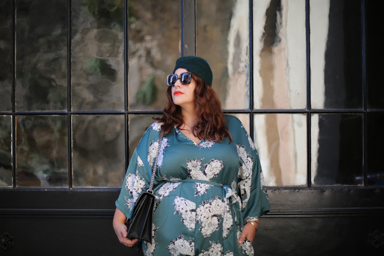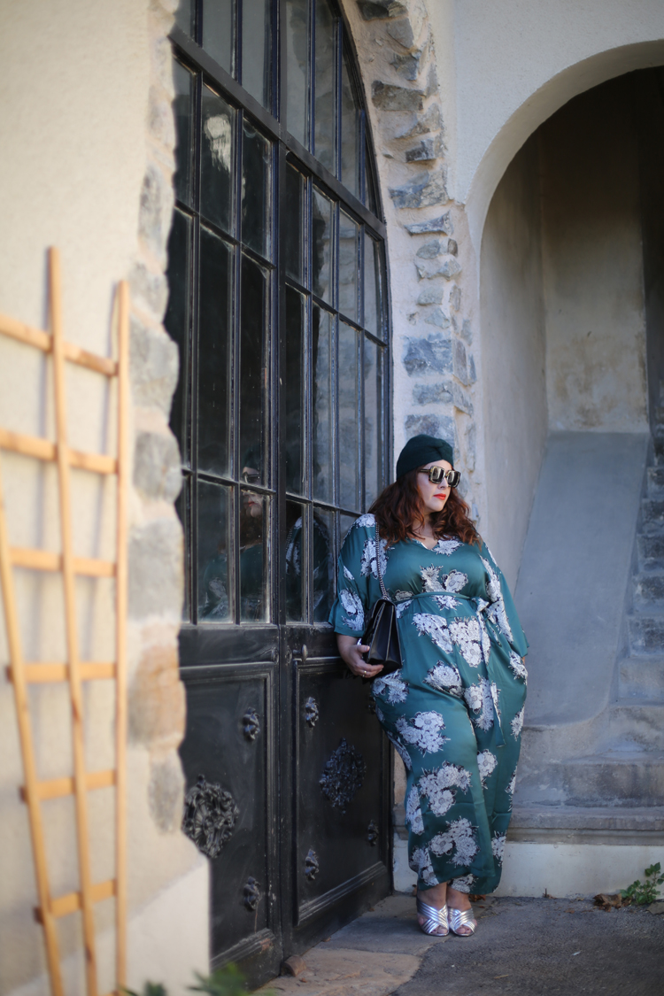 j’adore, ce vert de la combinaison est sublime et le turban donne vraiment envie ! j’adore ta façon d’oser là ou certaines ne connaissent que le “faut pas porter de motif quand on est ronde” !