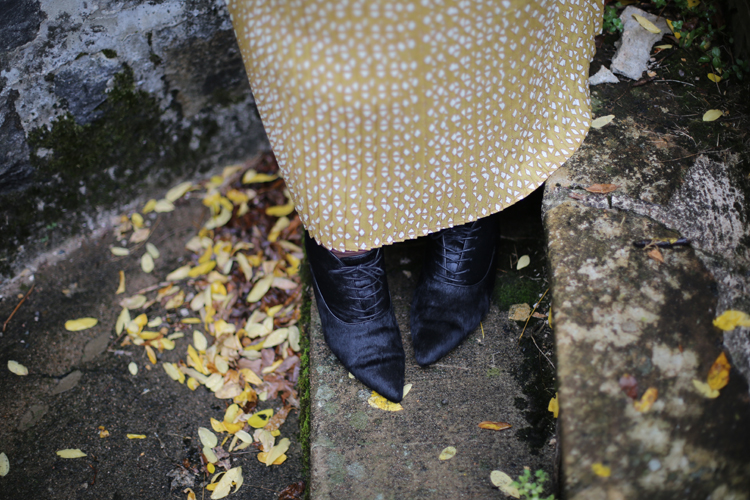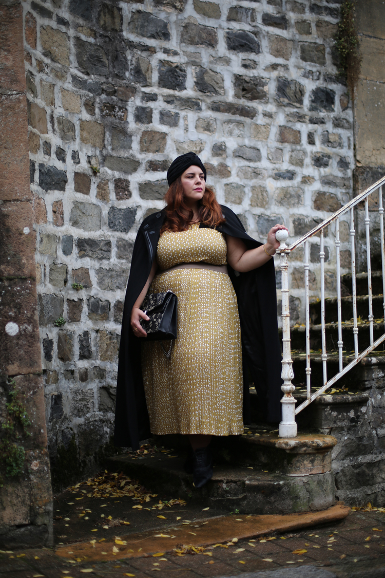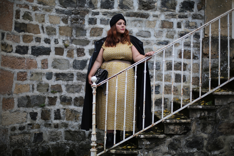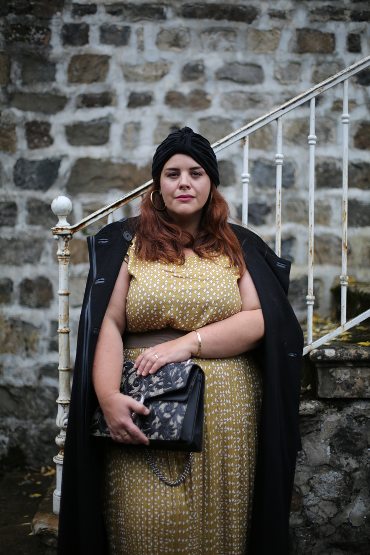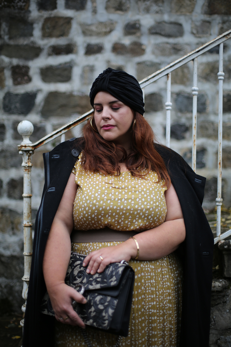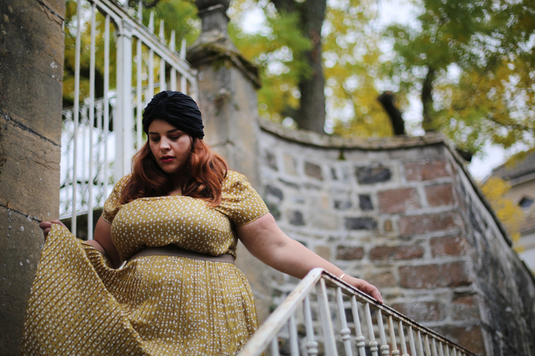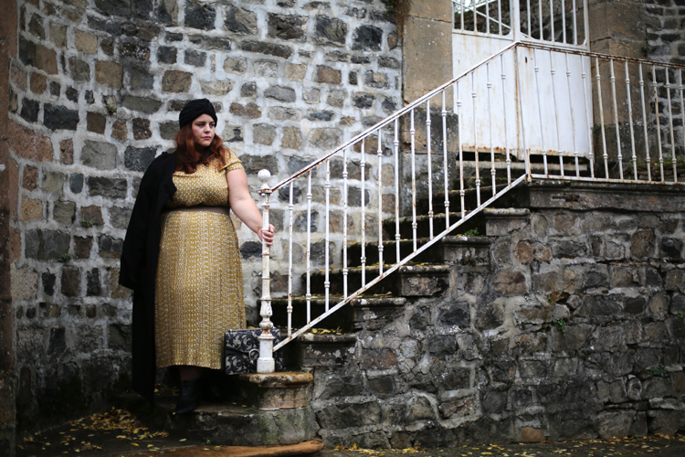 Cet ensemble est sublime!! J’aime bcp ce jaune moutarde qui en effet donne un petit côté vintage à la tenue. L’effet “robe” est très réussi, car moi qui n’aime pas particulièrement les ensembles, là je suis agréablement bluffée