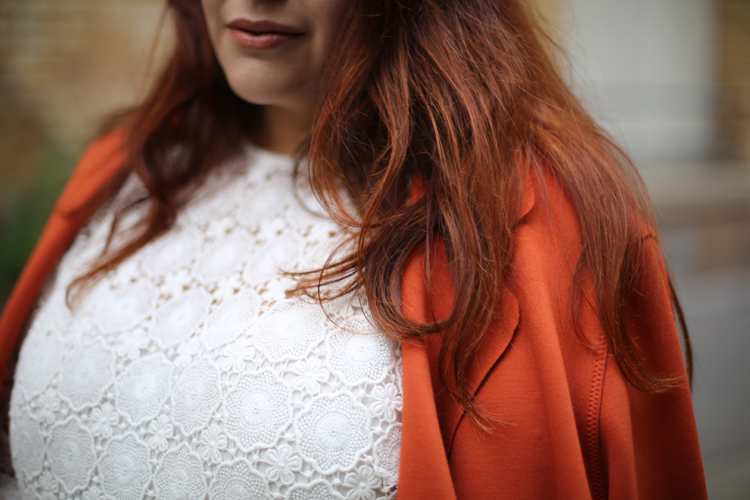 Super joli ! J’aime beaucoup cette robe (même si j’avoue ne pas encore oser porter autant de dentelle moi-même…) et surtout le manteau a une couleur superbe (qui d’ailleurs se marie très bien avec tes cheveux).