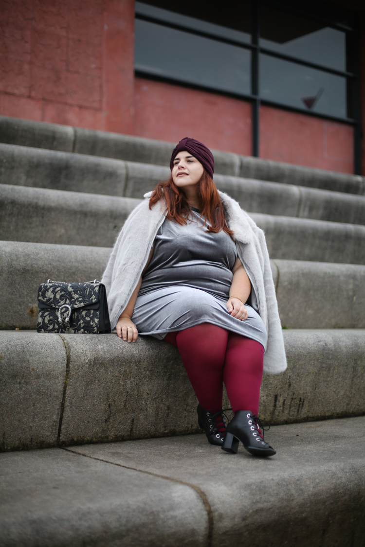 Je ne cours pas après le velours d’habitude, mais cette robe pourrait me faire changer d’avis! J’aime beaucoup l’association gris-bordeaux. Pour le réveillon de Noël, c’était pyjama en ce qui me concerne, vu qu’on l’a passé en famille devant la télé (enceinte de presque 8 mois, il m’est difficile de faire 200 km en voiture pour voir la famille). Pour le repas de lundi avec la belle famille, ce sera une robe rouge fluide de chez New Look offerte l’an dernier par ma petite soeur, un des rares vêtements un peu festifs dans lequel je peux faire rentrer mon bidon…