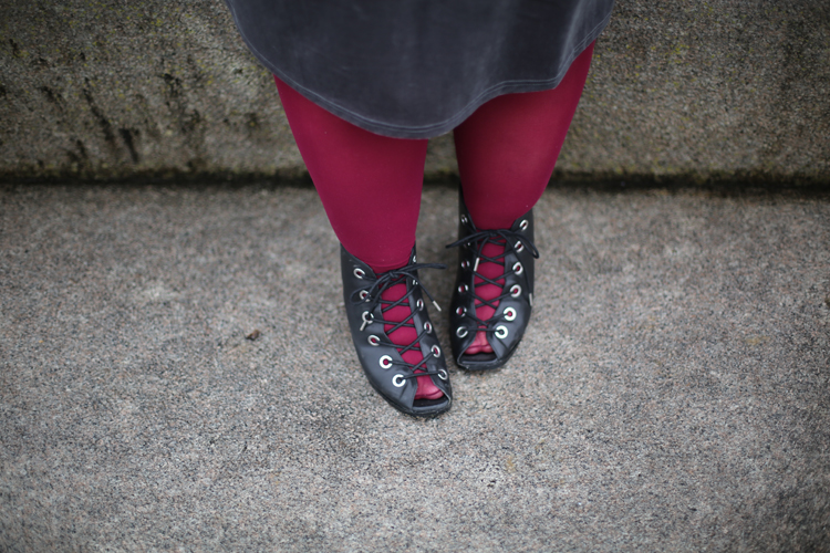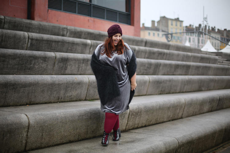 Une jolie robe en velours gris sombre, j’aime beaucoup le contraste qu’elle donne avec des accessoires colorés et mes cheveux. C’est une robe agréable pour passer les fêtes ou même en soirée. Le velours est assez lourd et tombe parfaitement bien.