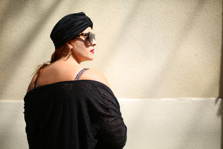 Trop joli look! Maillot de bain et top canon + turban = look d’enfer. J’adore.