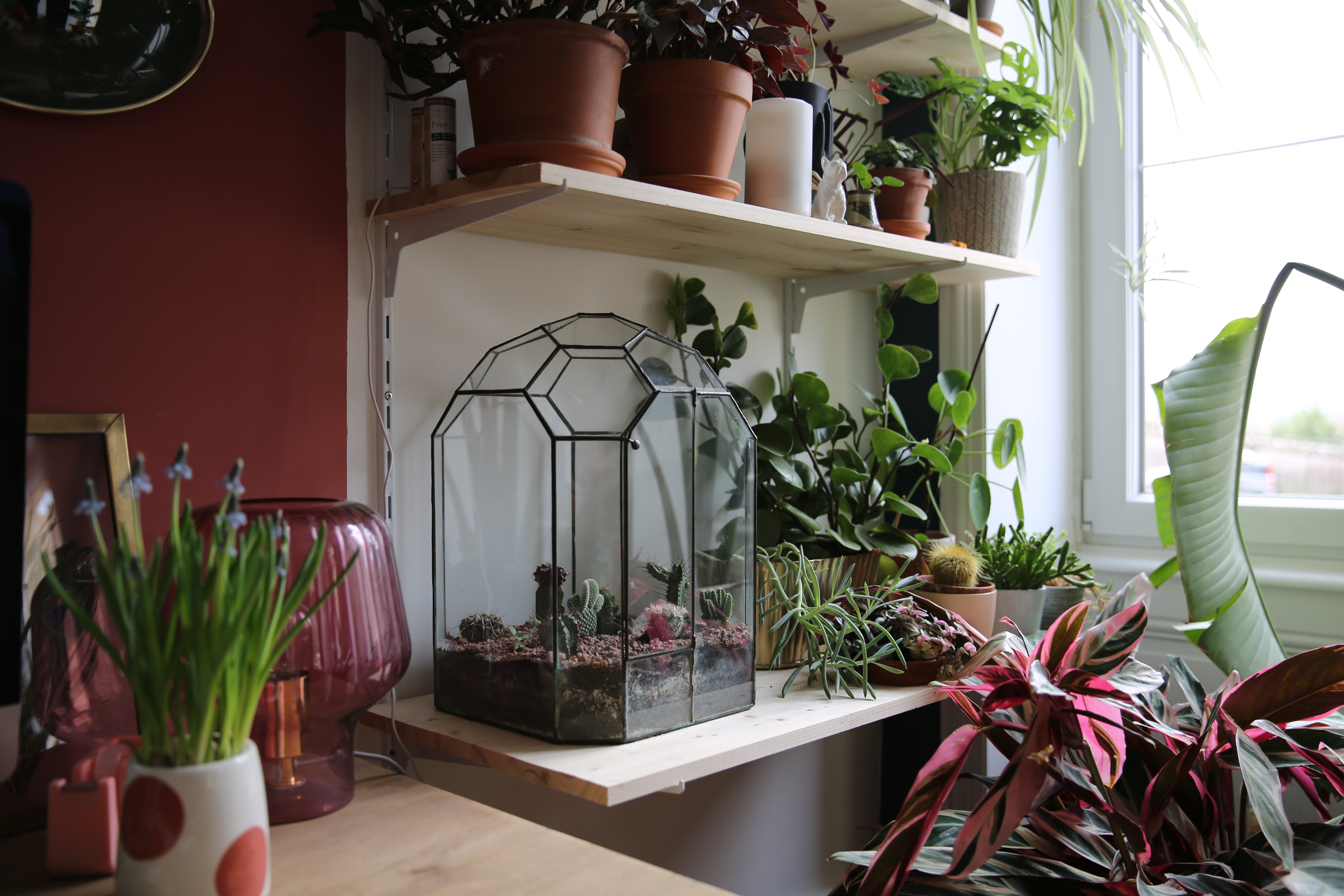 Merci pour ces belles photos, je suis totalement fan de ton étagère à plantes et de cette mini serre <3