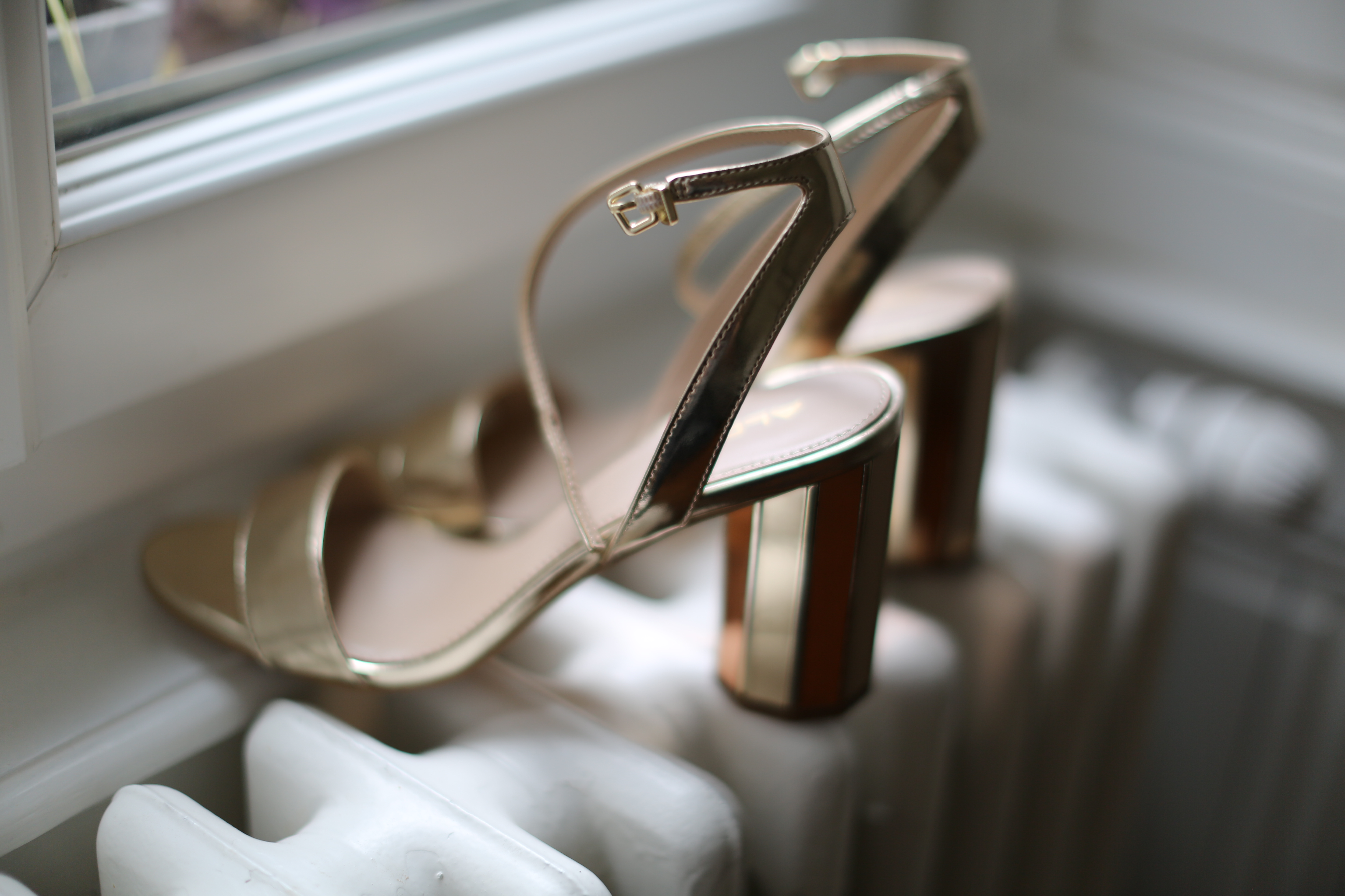Et pour terminer la tenue, une paire de sandales dorées très stables et ma foi confortables car pas très hautes.