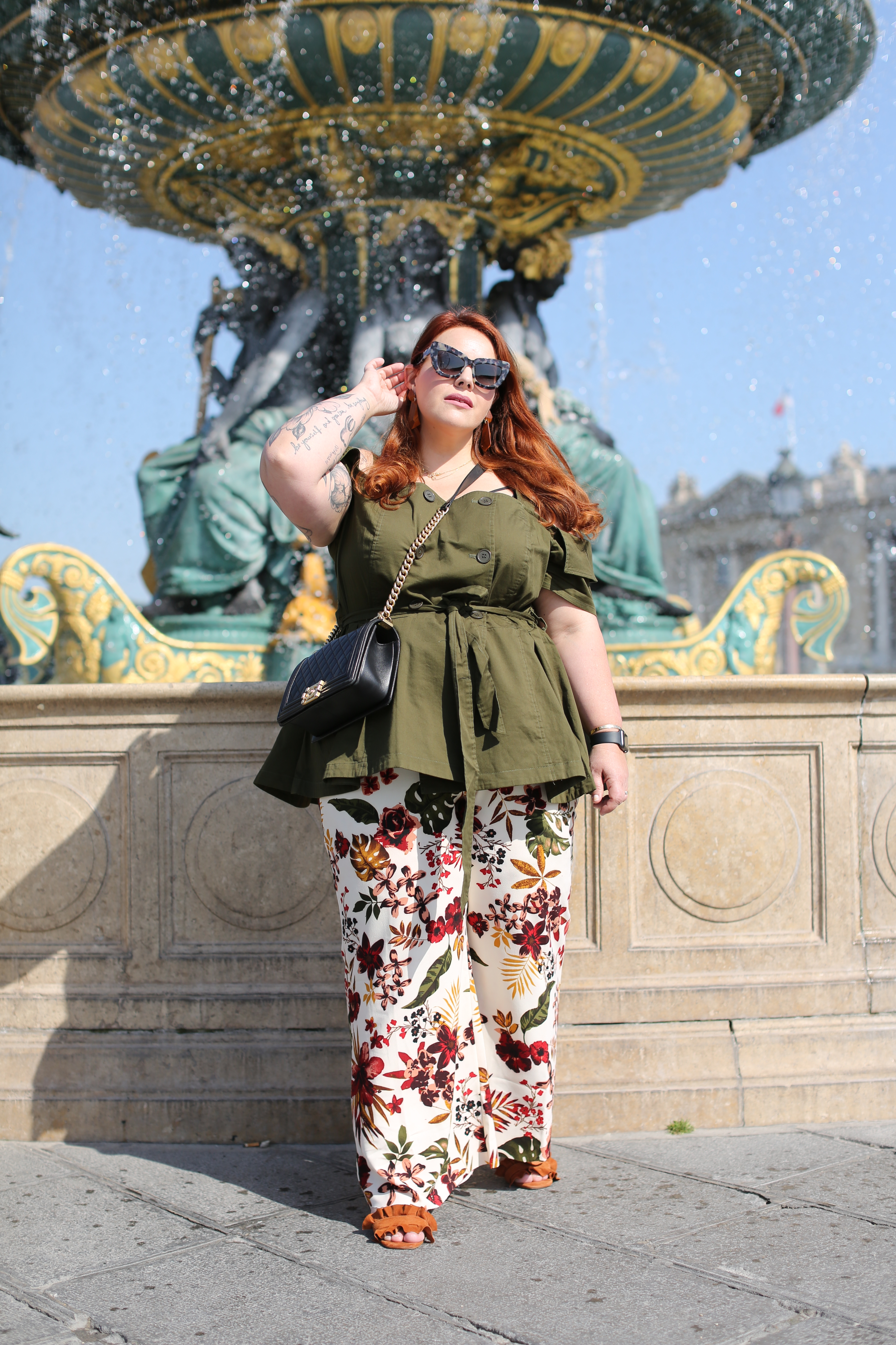 Top Eloquii – Pantalon Forever21 – Sandales E8 Miista – Sac « Boy » Chanel