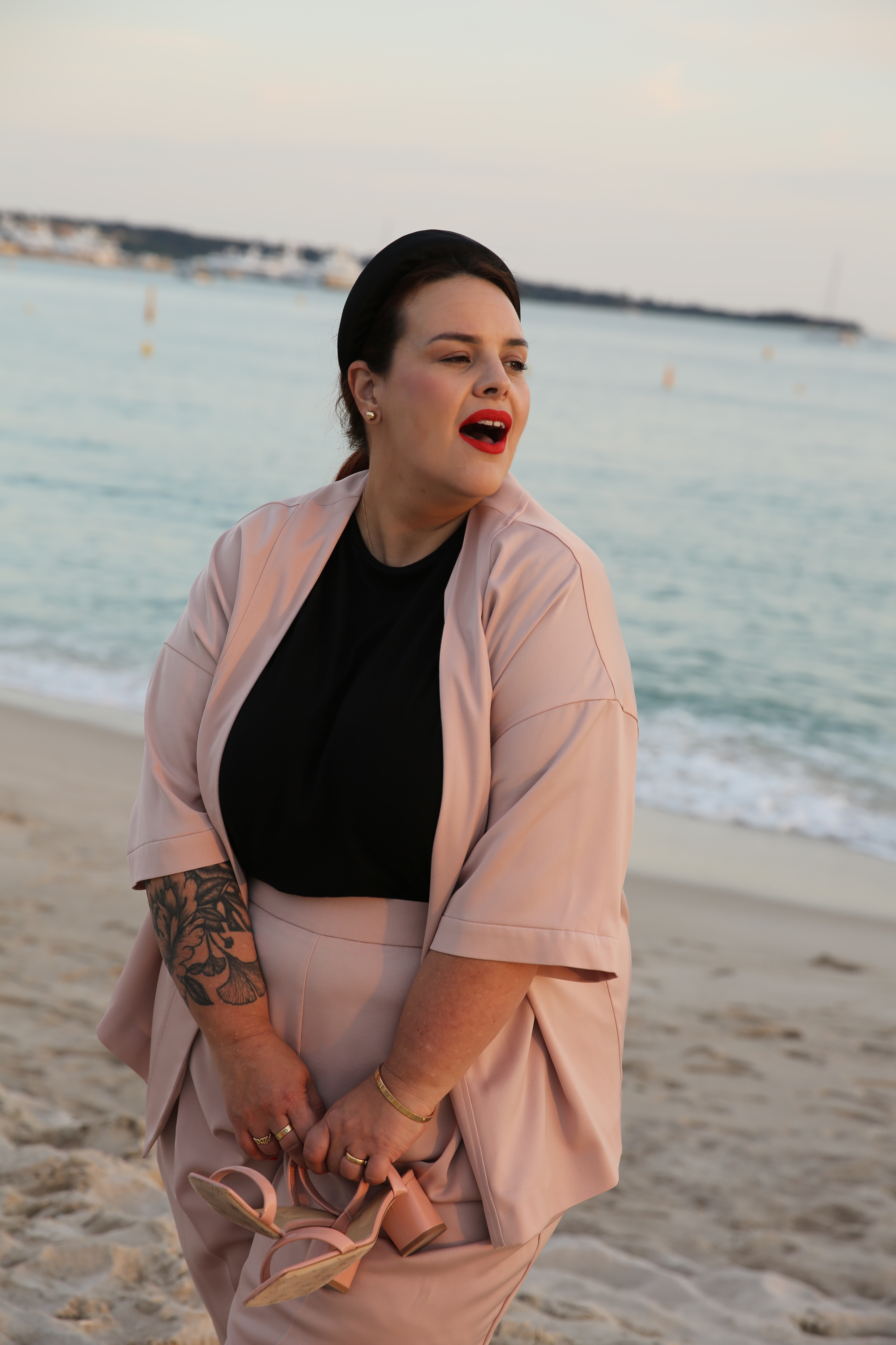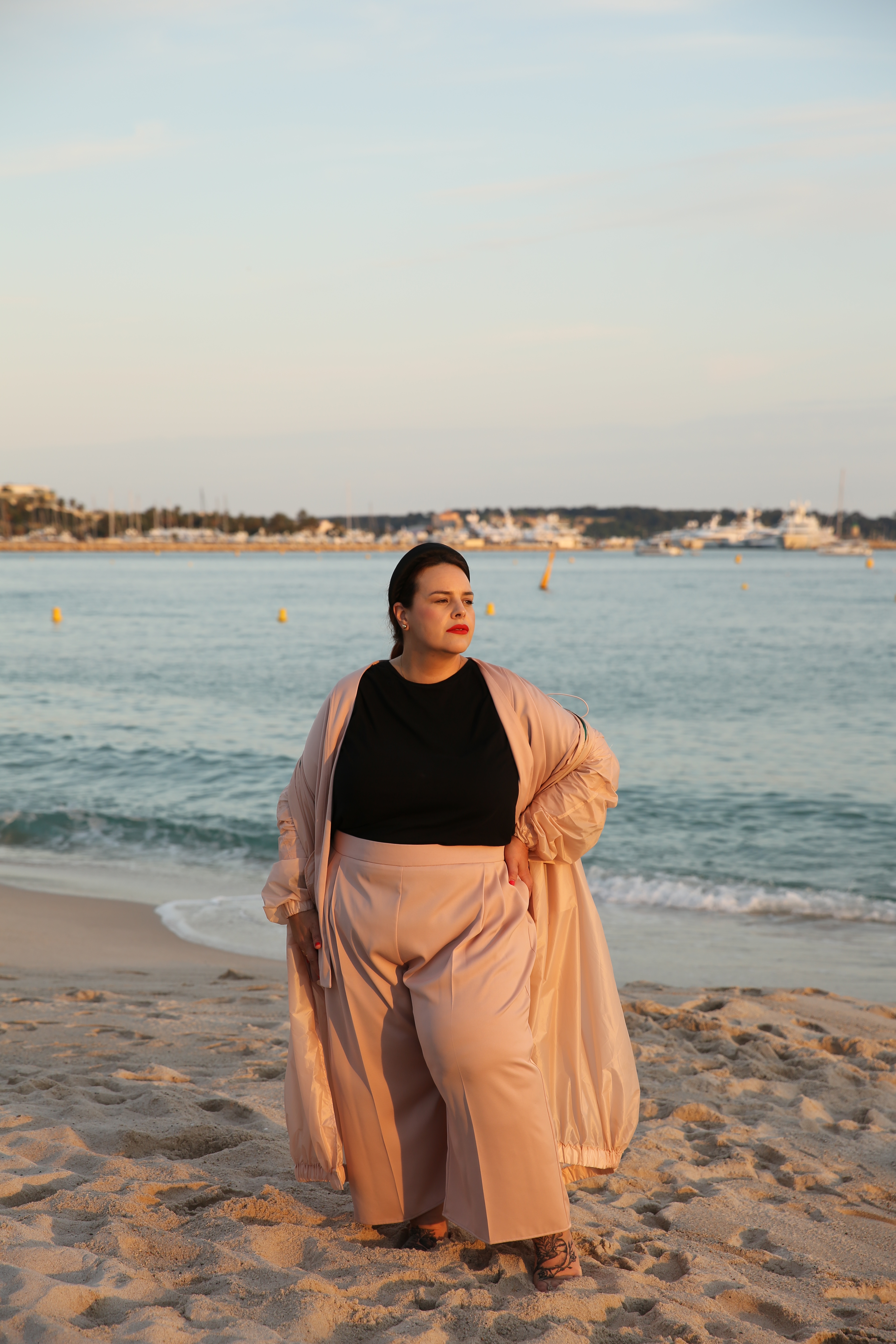 Je portais ce soir-là un ensemble nude acheté l’année dernière sur le shop de New Look et le magnifique imperméable de la créatrice Ester Manas pour Les Galeries Lafayette. La créatrice belge a imaginé une capsule d’environ 10 pièces dans une taille unique pour toutes #fashionforall . Par un jeu savant de fronces, ses vêtements peuvent être portées par toutes les femmes sans souci de taille. C’est d’ailleurs  l’expérience shopping la plus incroyable que j’ai vécu, ne pas avoir à se soucier de la taille sur l’étiquette, c’est assez fou et ultra libertaire.