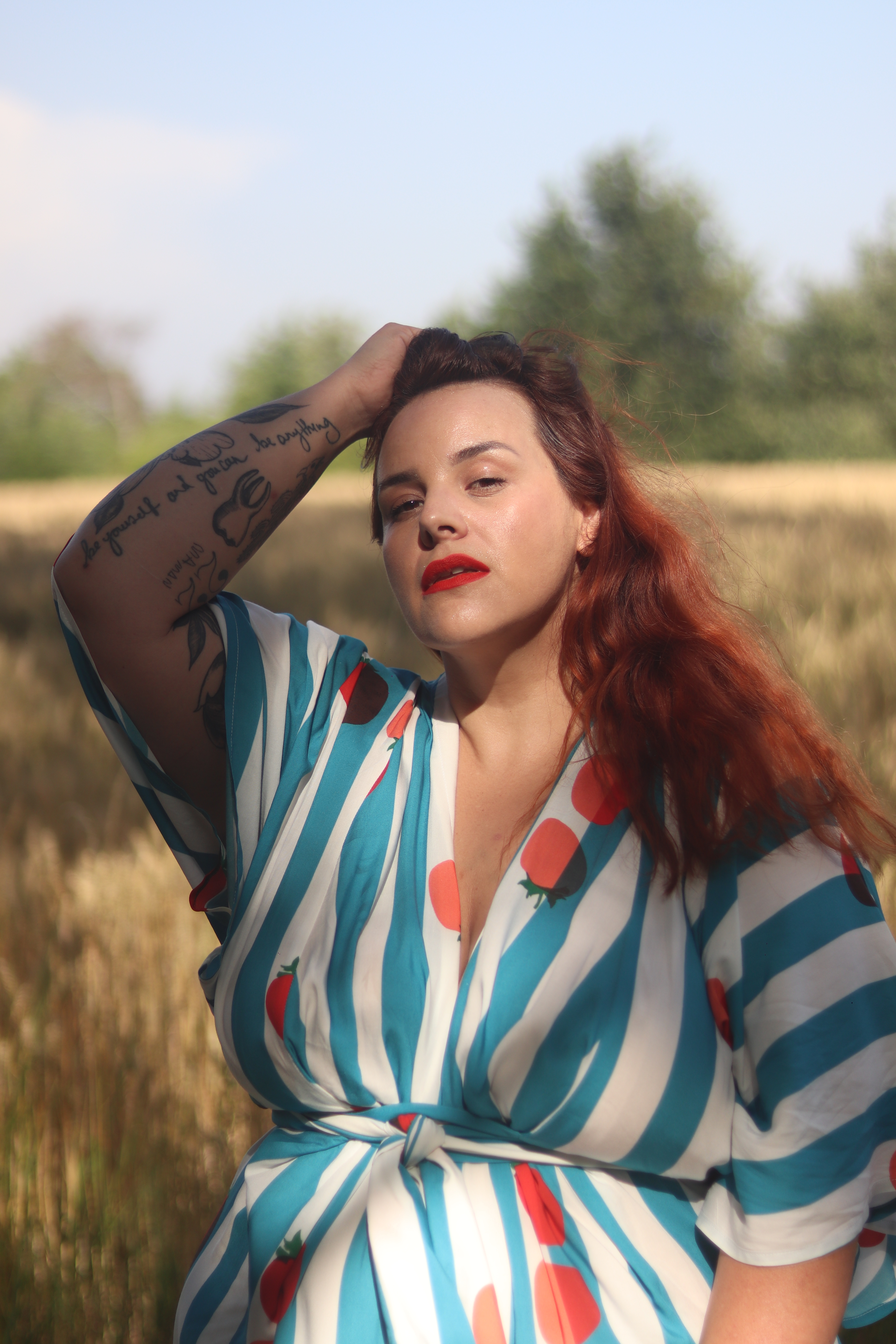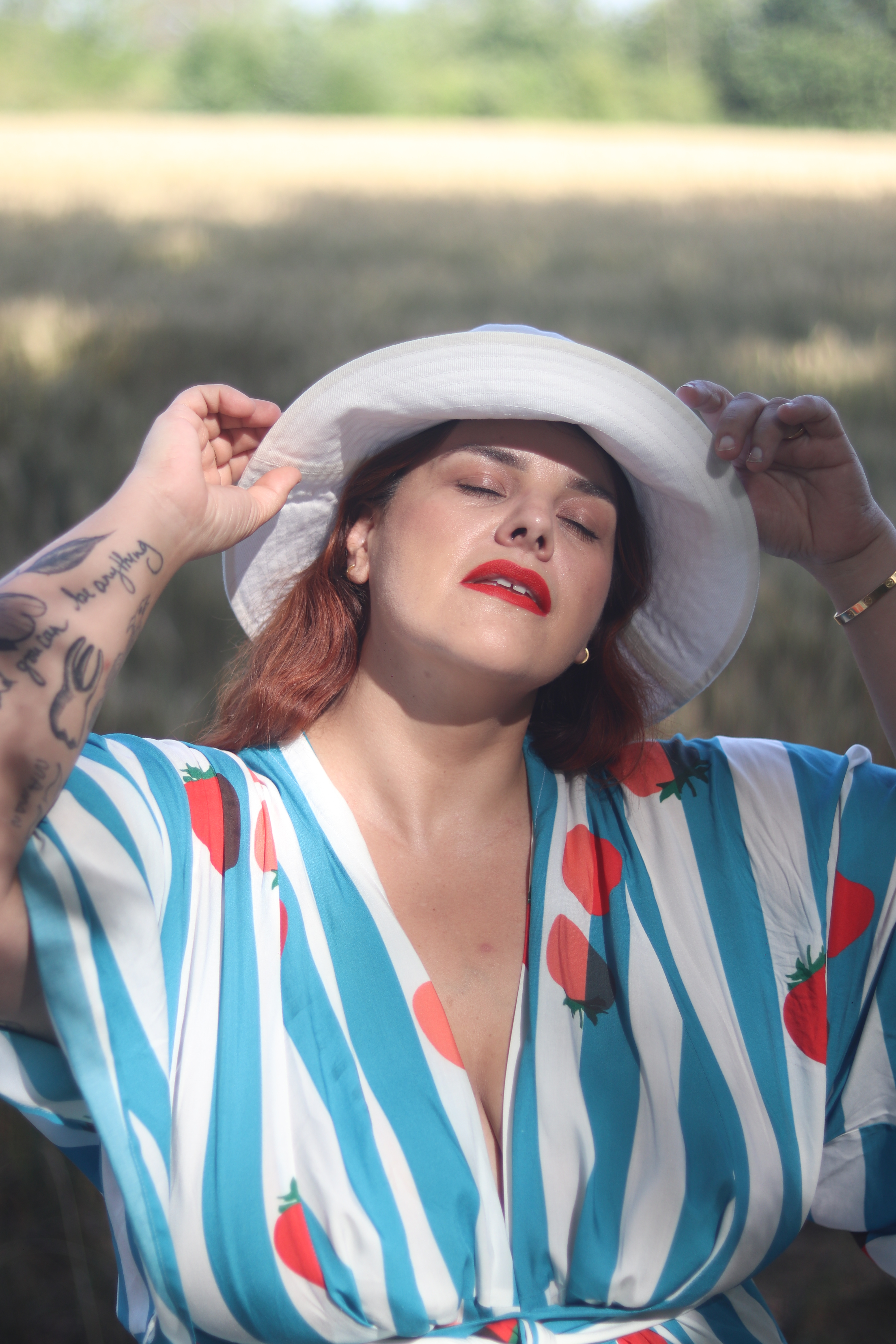 Nous avons choisi une des plus chaudes journées de juillet pour shooter, et en fin de journée je n’en pouvais plus de me changer à l’arrière de la voiture par 40°C! Cerise sur le gâteau, mais je ne le savais pas encore, en shootant ce look je me suis fait dévorer par les aoûtats, plus de 200 morsures sur les jambes et les avant-bras. Un enfer qui reste encore marqué sur mes jambes.