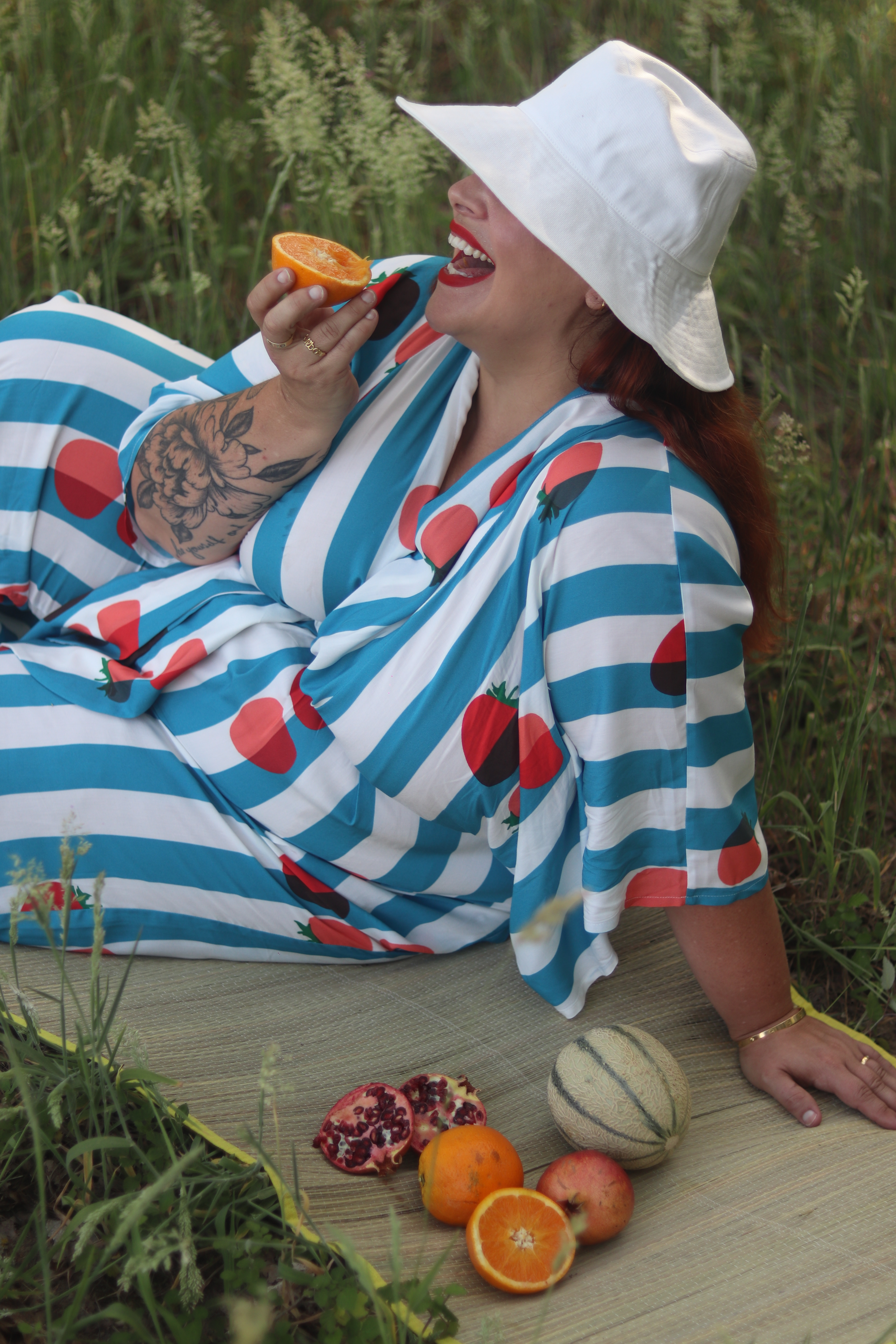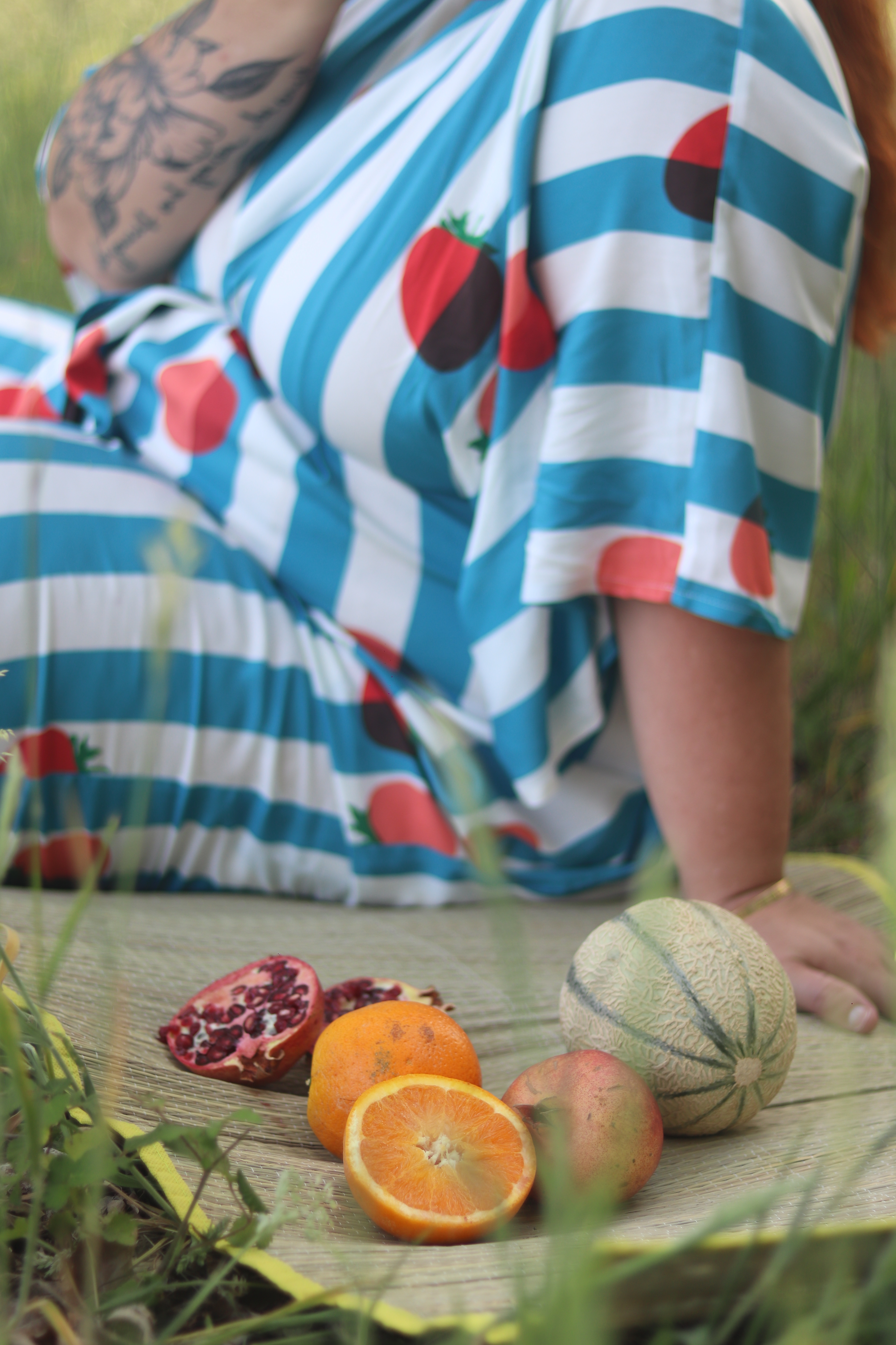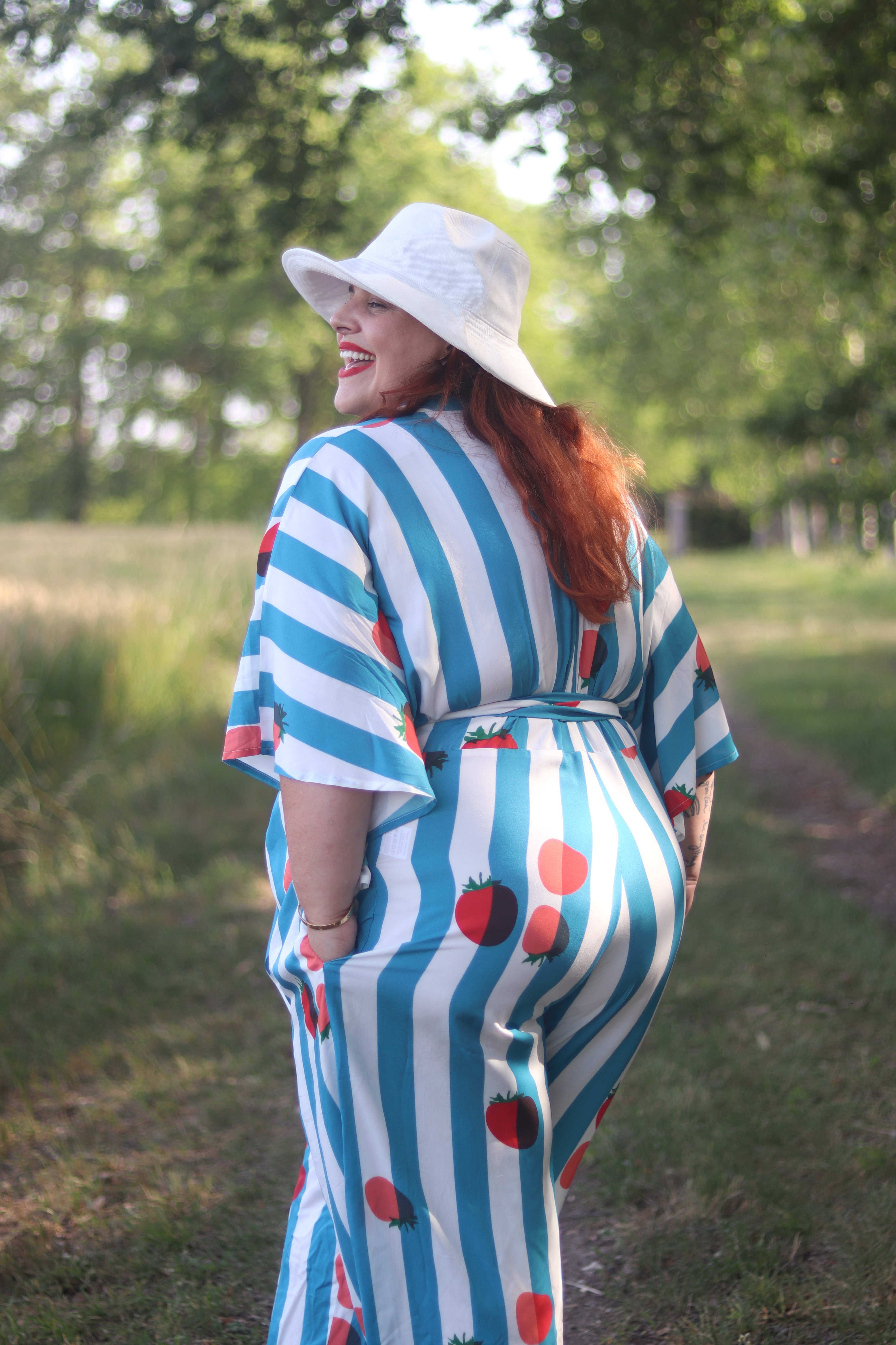 Heureusement que je l’aime cette combinaison Drew. Je l’avais tout d’abord prise en coquelicot mais elle était nettement plus jolie à rayures avec ces fraises/tomates. En plus on s’y sent si bien dans ce tissu fluide et léger. Je l’adore!!