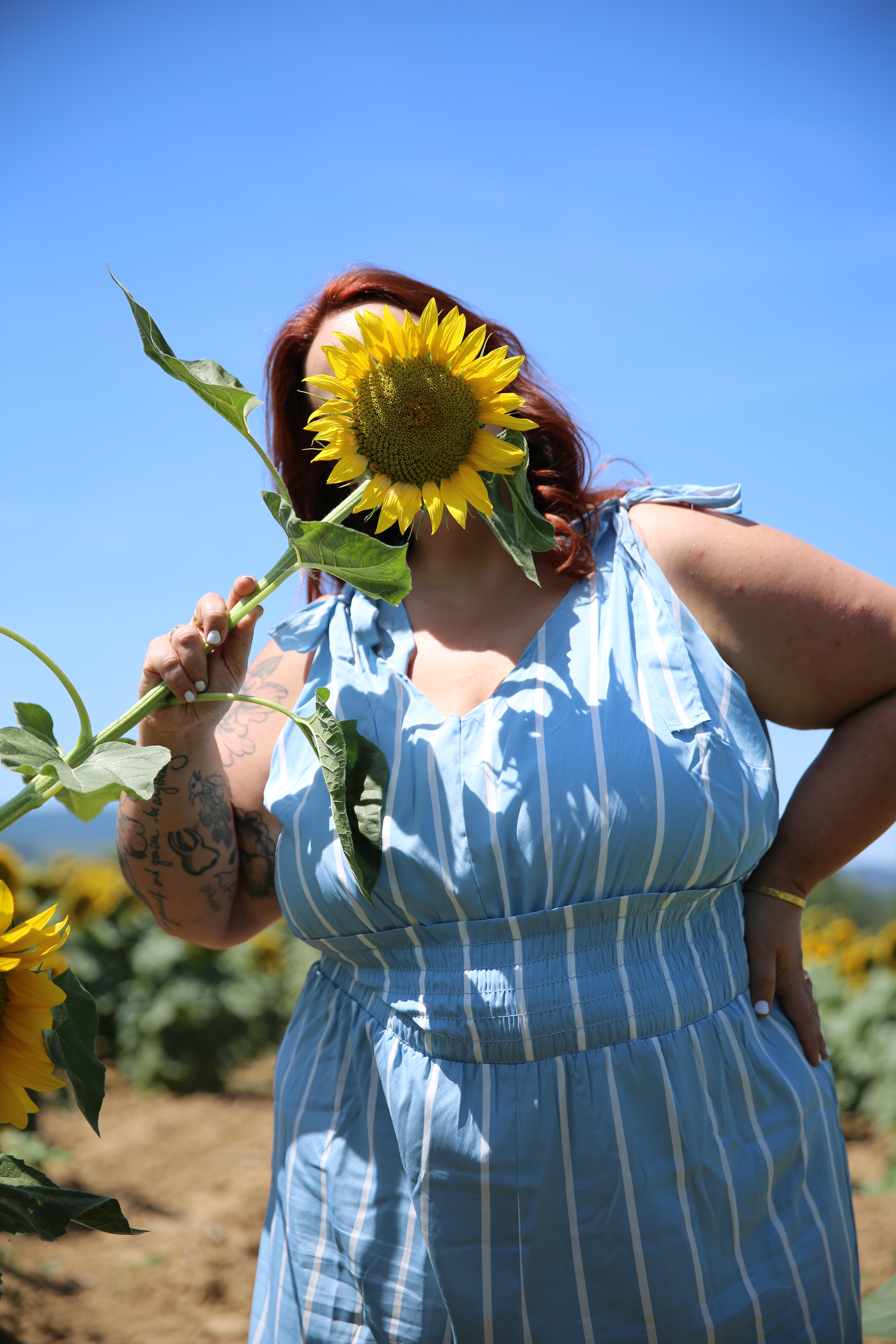 Mais que j’adore cette séance photo ! Les tournesols c’est tellement synonyme des vacances, je me rappelle les trajets vers le Sud de la France en famille ! Alala que j’aime ça !