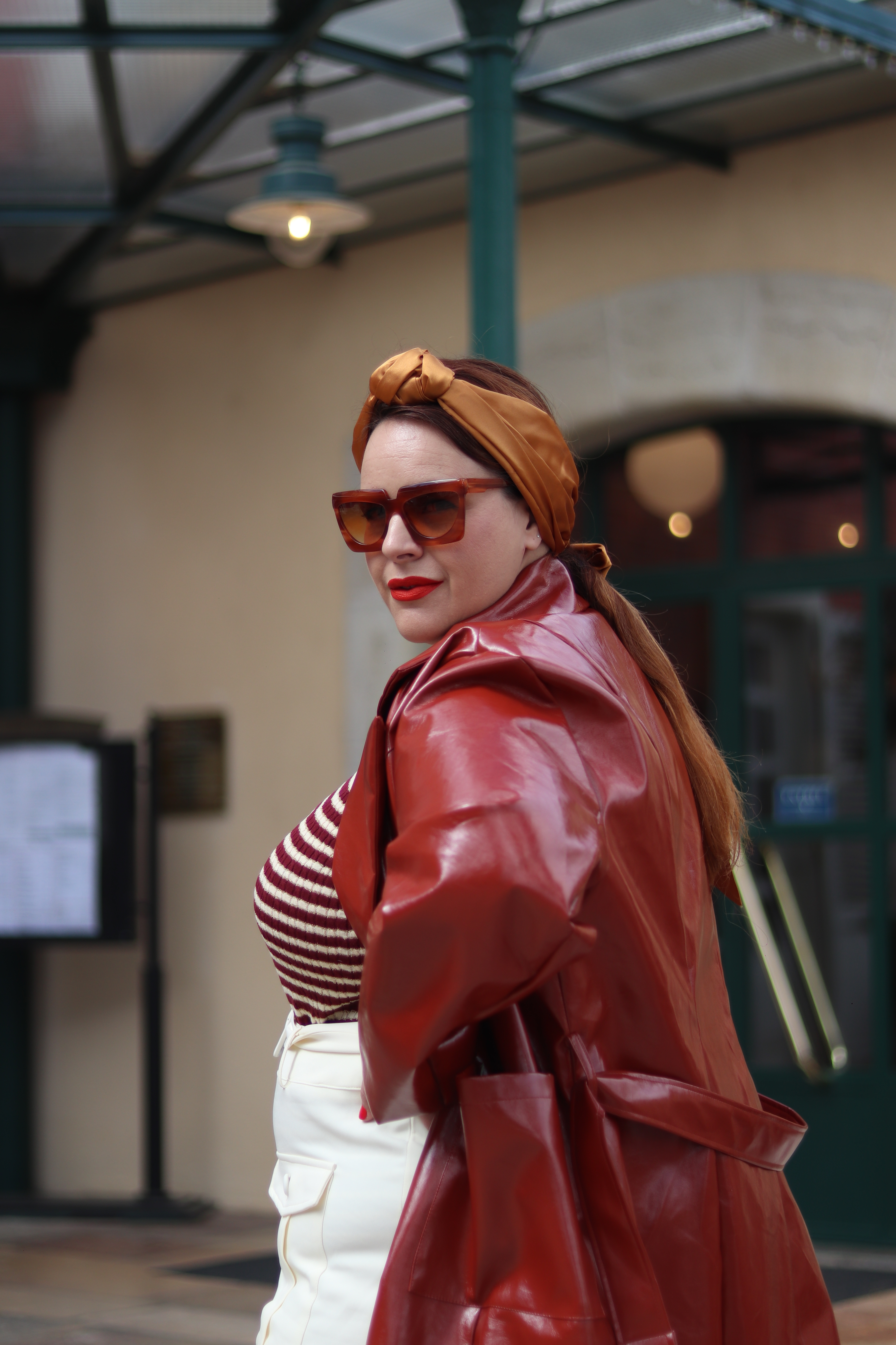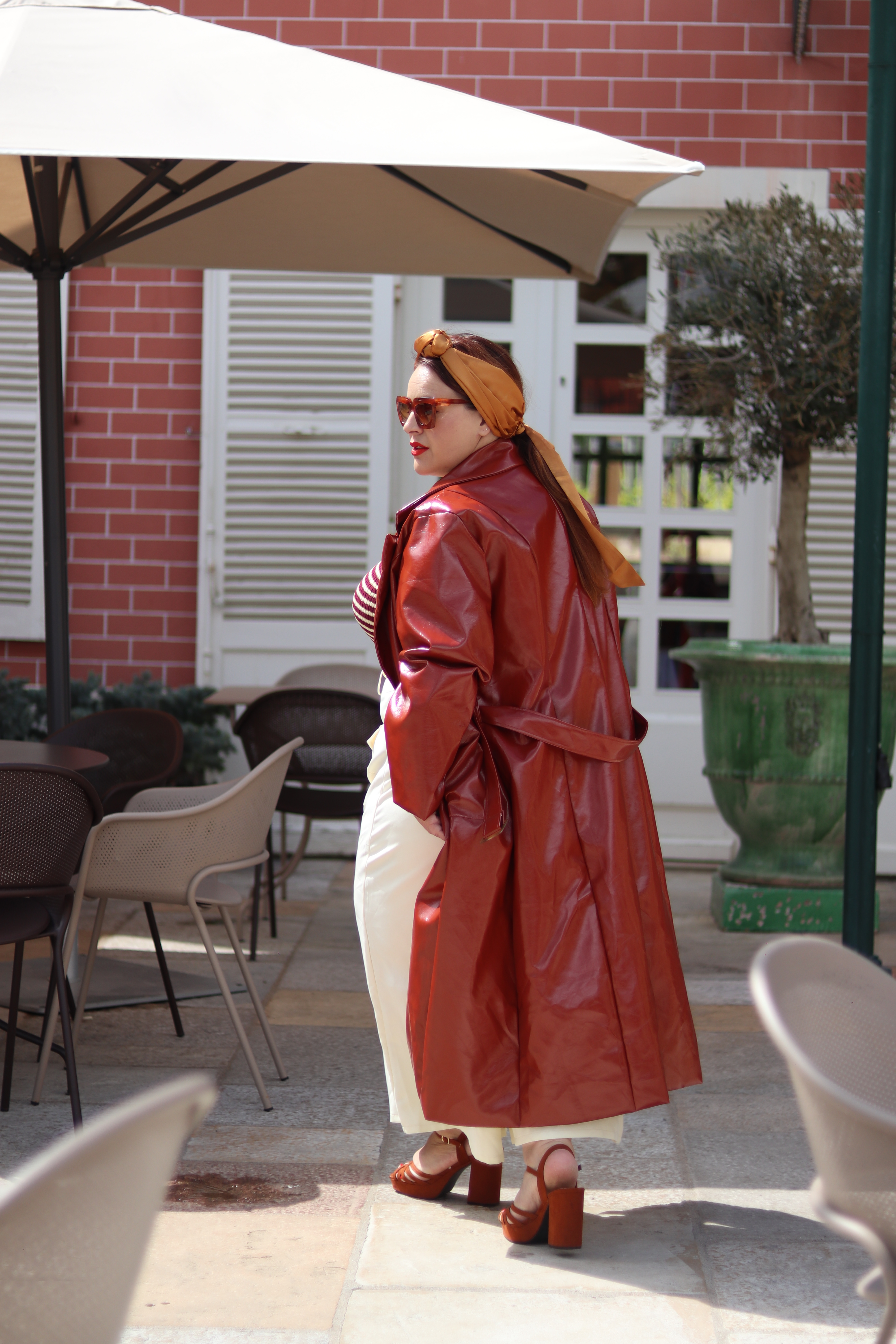 J’ai tout de suite flashé sur ce trench rouille lorsque je l’ai aperçu sur une blogueuse américaine, il a ensuite très vite débarqué en Europe, vous l’avez certainement déjà vu sur plusieurs blogs ou Instagram. Sa couleur est parfaite, il est bien long comme j’aime et je préfère le porter ouvert que fermé car je trouve la ceinture un poil courte, et les manches trop longues. J’ai fait raccourcir les manches et c’est mieux ainsi.