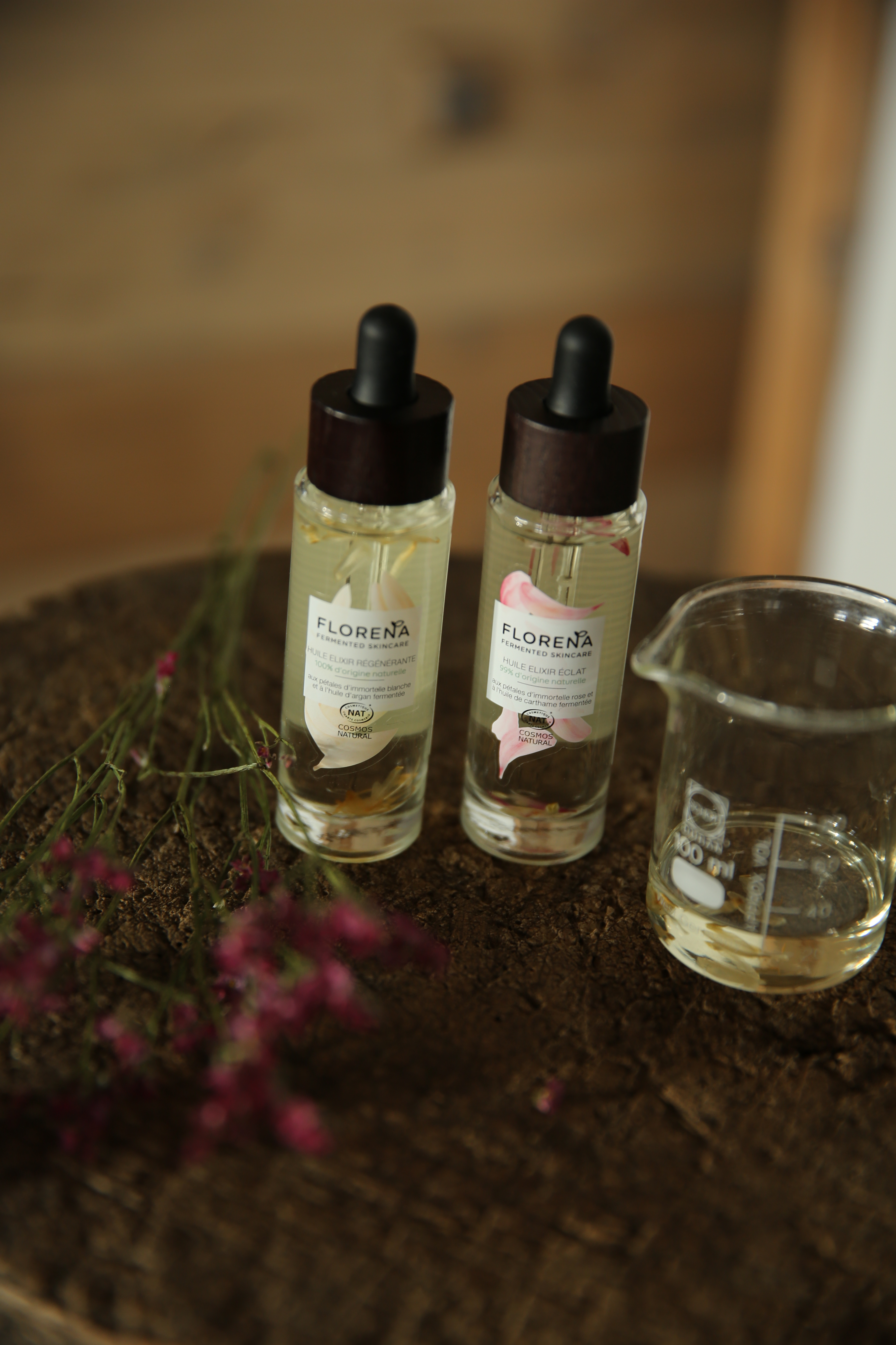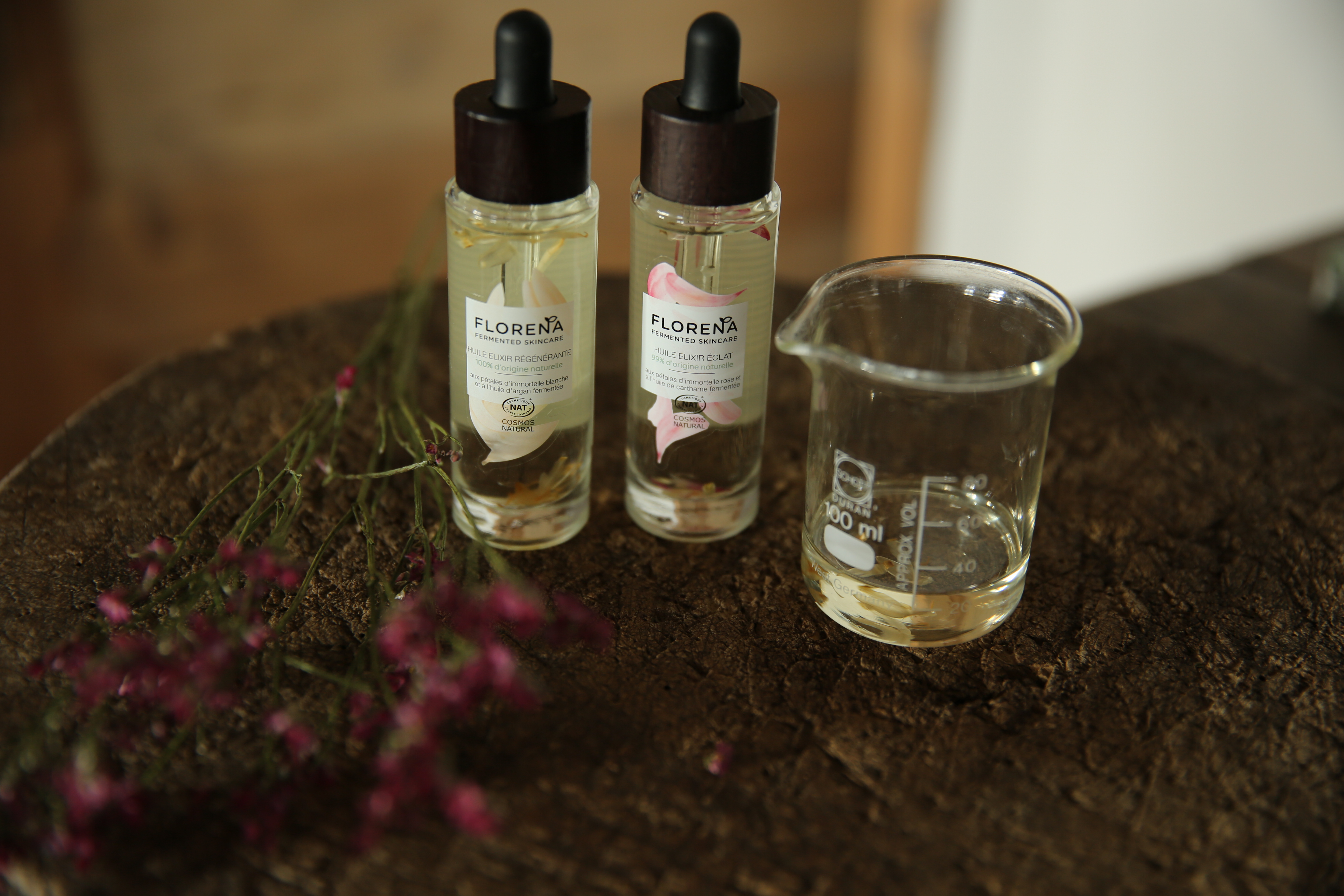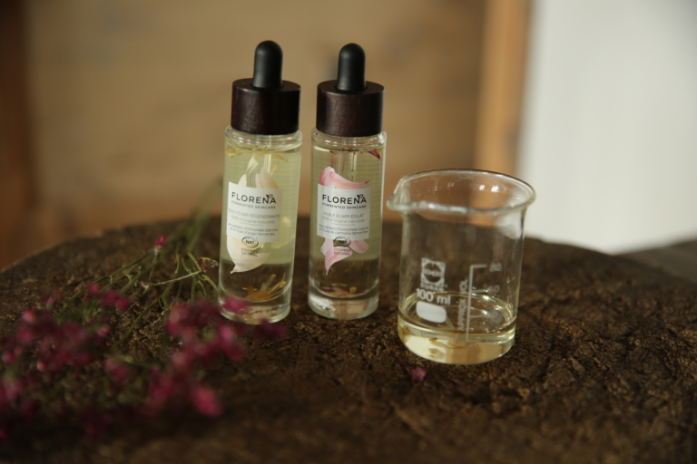 FLORENA Fermented Skincare utilise l’efficacité des fleurs et des huiles pour booster l’hydratation avec le camélia et le chèvrefeuille pour ses pouvoirs antioxydants. Les pétales d’Immortelle blanche associés à l’huile d’argent pour régénérer la peau dans une huile très fluide et agréable à appliquer. Pour l’éclat, l’Immortelle rose est combinée à l’huile de carthame aide la peau terne à se régénérer.