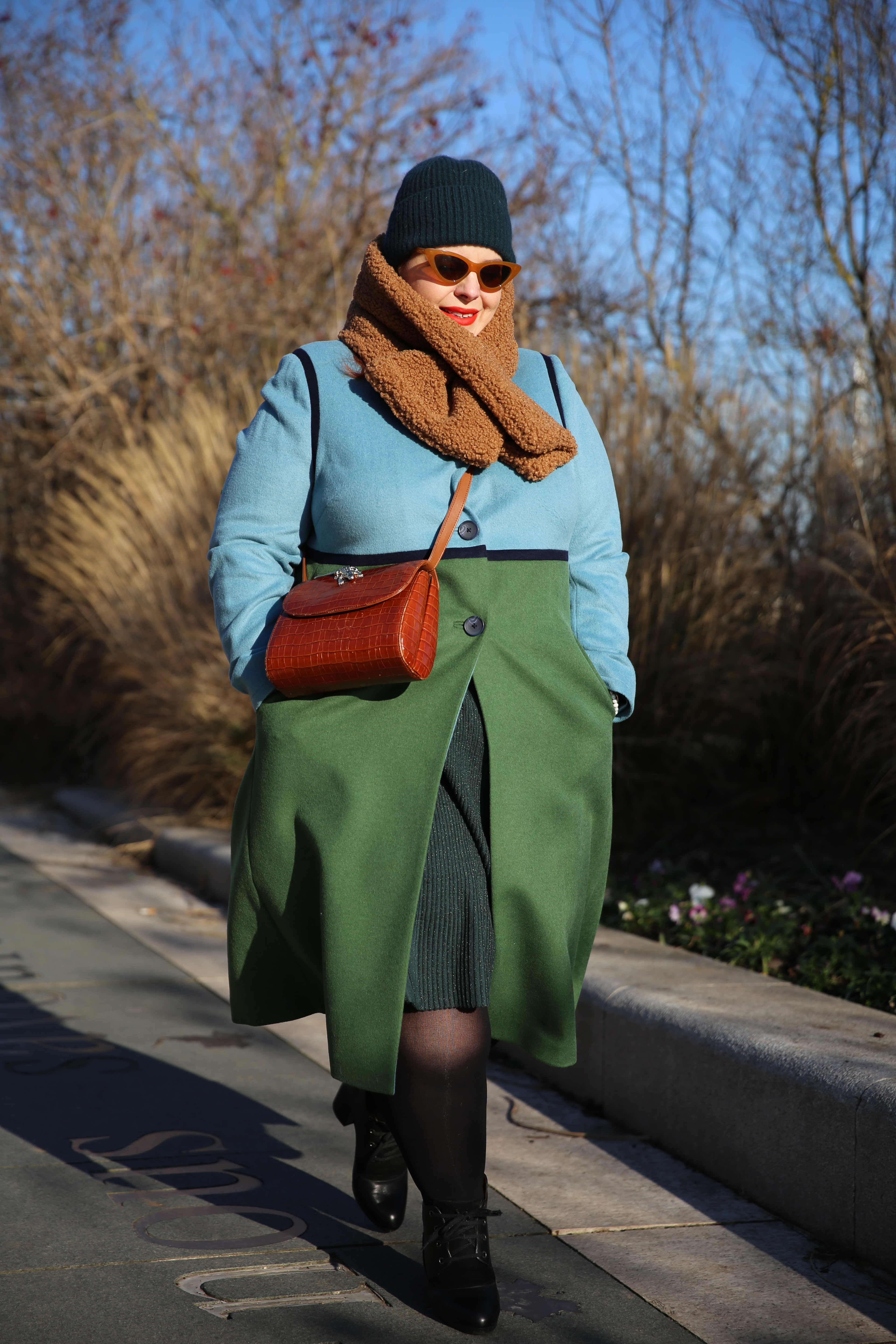 Manteau bicolore Boden – Robe Boden – Bonnet &Other Stories
