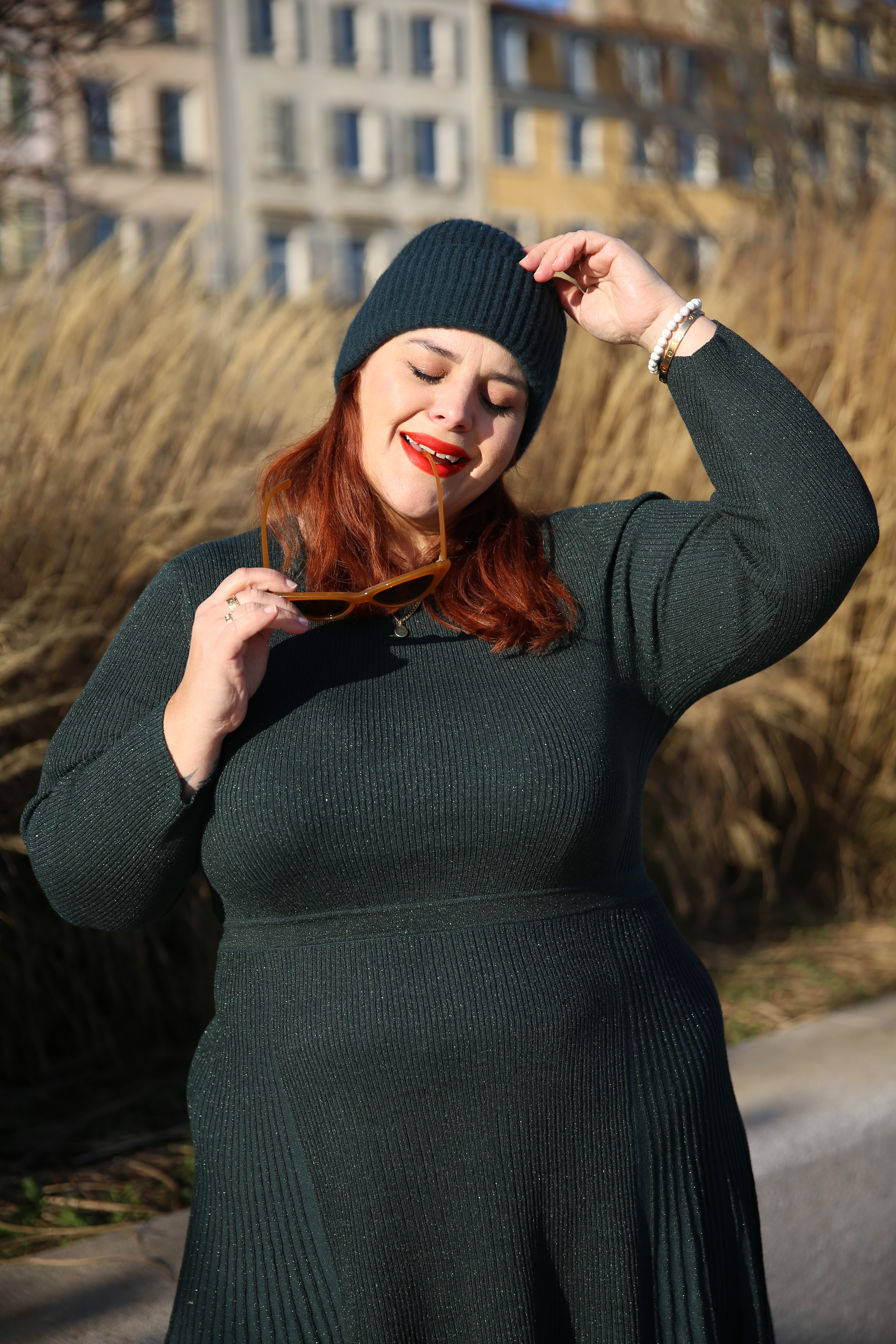 J’ai également choisi la robe chez Boden, n’est-elle pas mignonne? Ces petites robes faciles en mailles lurex, elle tombe hyper bien et non elle ne gratte pas malgré les fils brillants. Sa jolie couleur vert forêt est tout de suite illuminée par le lurex. J’ai beaucoup porté cette robe entre les fêtes de fin d’année et je continue à la porter avec plaisir en ce début d’année. Il n’y a pas de saison pour le lurex!