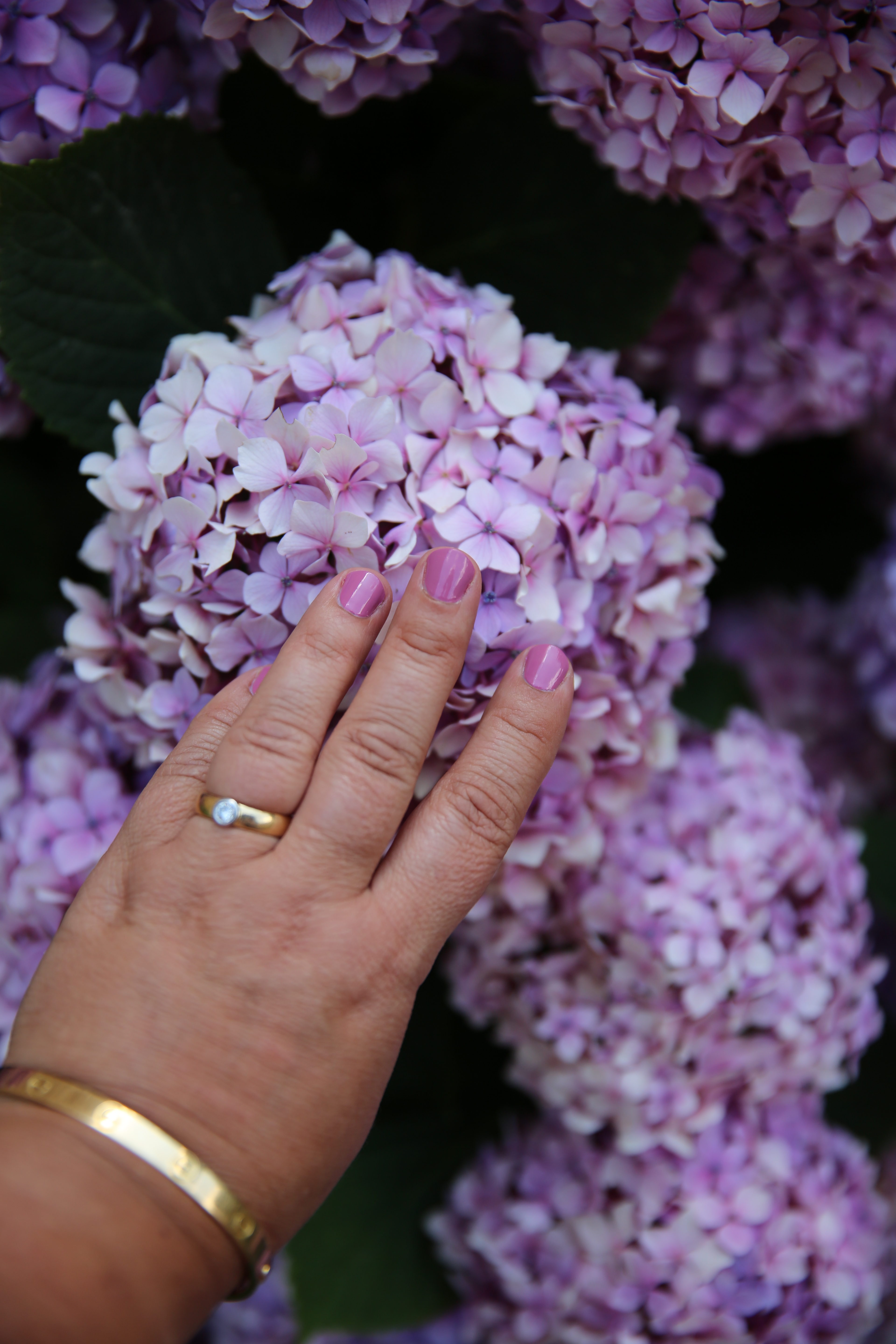 L’occasion pour moi d’immortaliser cette tenue devant mon bel hortensia qui porte des nuances de rose, au mauve en passant par le bleu ciel, j’adore!!