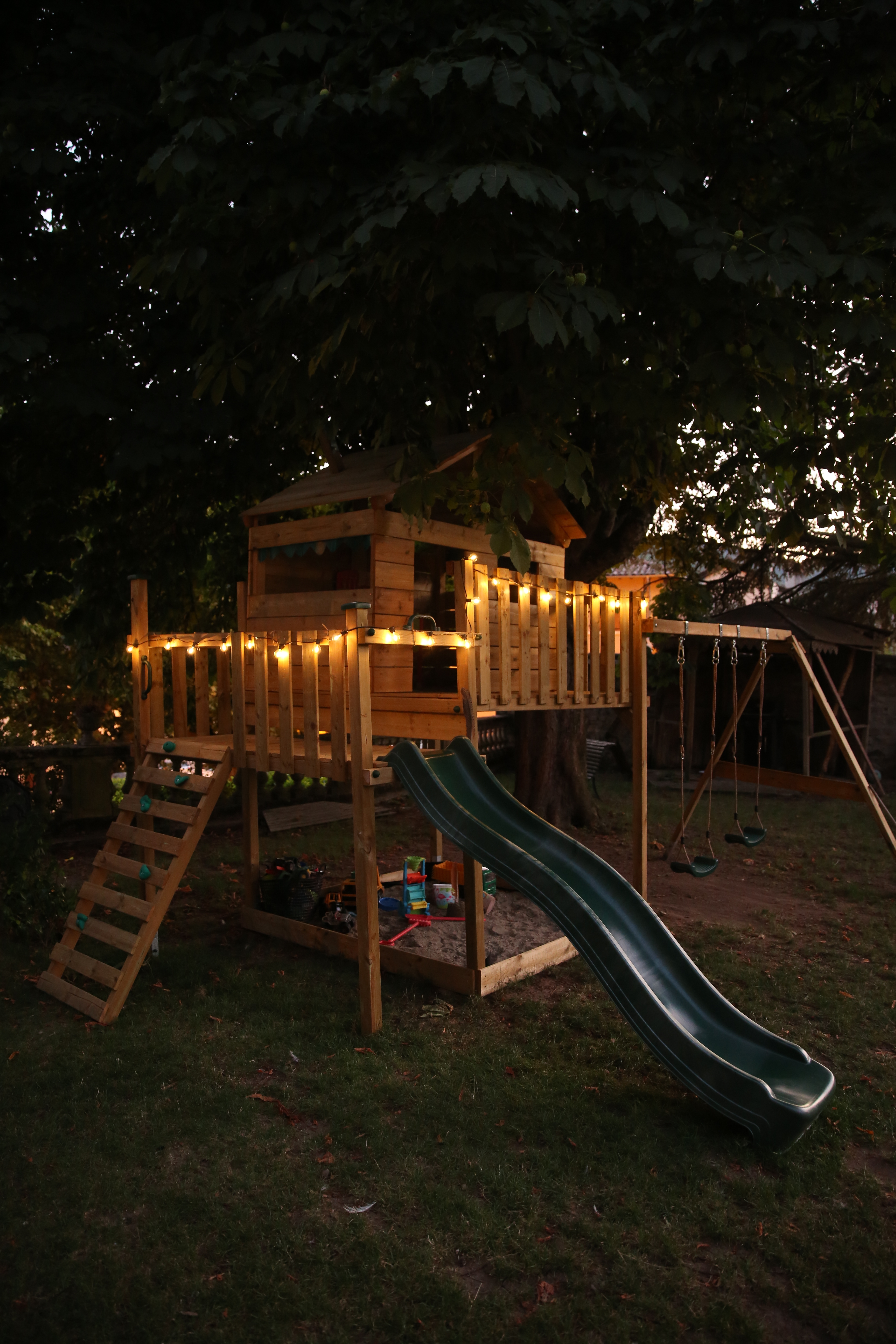 Le résultat est canon! Au-delà de ce qu’on espérait, et les enfants sont ravis! Ma fille passe beaucoup de temps dans la cabane, je lui ai installé une petite cuisine et quelques jouets. Elle a très vite trouvé ses marques. Mon fils lui est fan du plan d’escalade, du toboggan. Mes enfants ont 4 et 7 ans et je vous conseille de ne pas trop attendre pour investir dans ce genre d’ensemble de jeux, je pense que dès 3 ans c’est totalement accessible. La cabane est bien perchée, son sommet culmine à 3m50 du sol, les enfants dominent le jardin et le village. C’est parfait pour se créer de belles aventures!