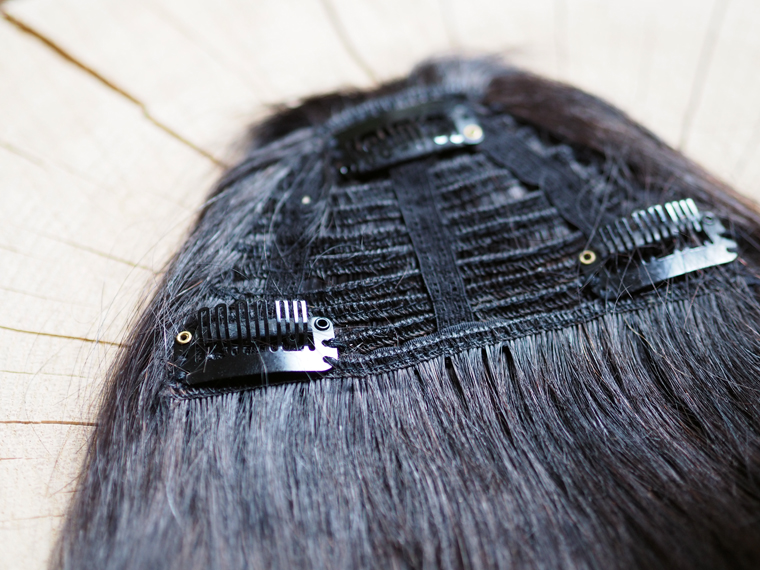 pictures: with et without my hairpiece fringe – the back of my bangs with the clips