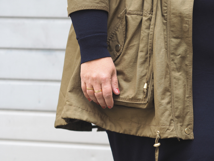 Because it must already have good material, not too cheap, not too wrinkled. Then the right color, not too khaki, not too green. And for me it must also have details at closures and pockets. Finally essential details it does not do too “sport” (yes I admit I is not messing my limits) my parka was to have a zip and gold buttons.