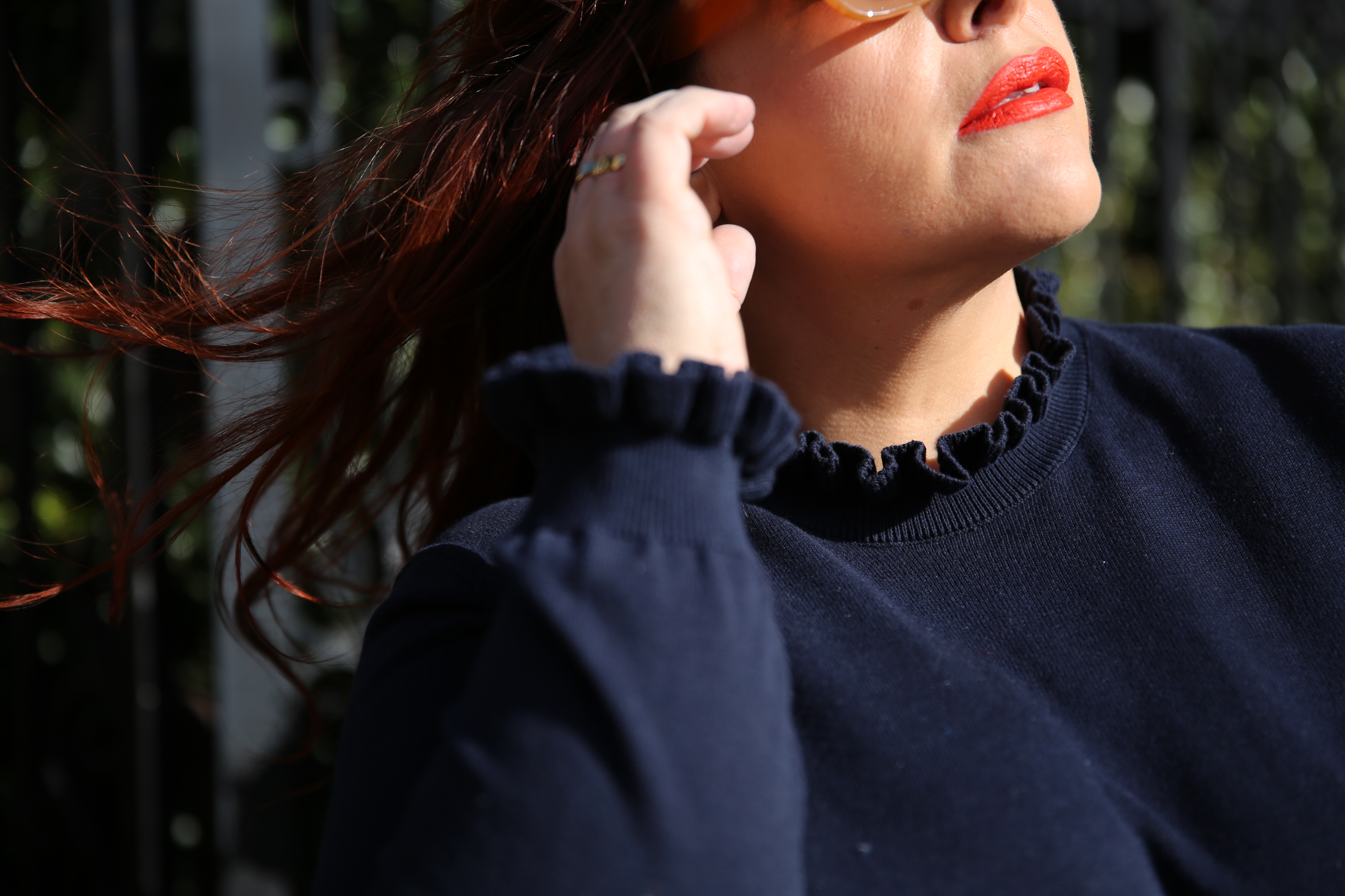 J’adore l’ensemble! Tout te va bien. Tu l’as pris en quelle taille le pull?