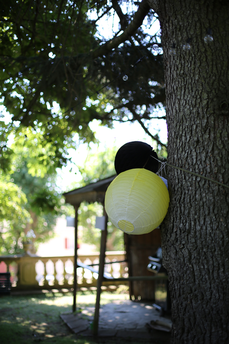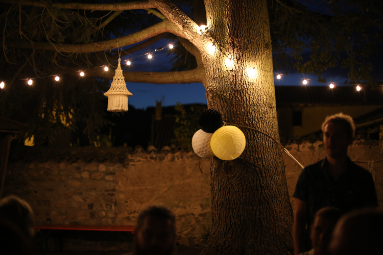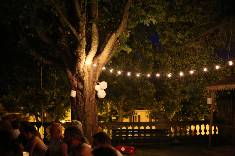 Le soir venu, le dessous des arbres étaient éclairé grâce aux jolies guirlandes façon guinguette. J’aime beaucoup cette lumière douce et chaleureuse qu’elles dégagent pour accompagner la fête jusque tard dans la nuit.