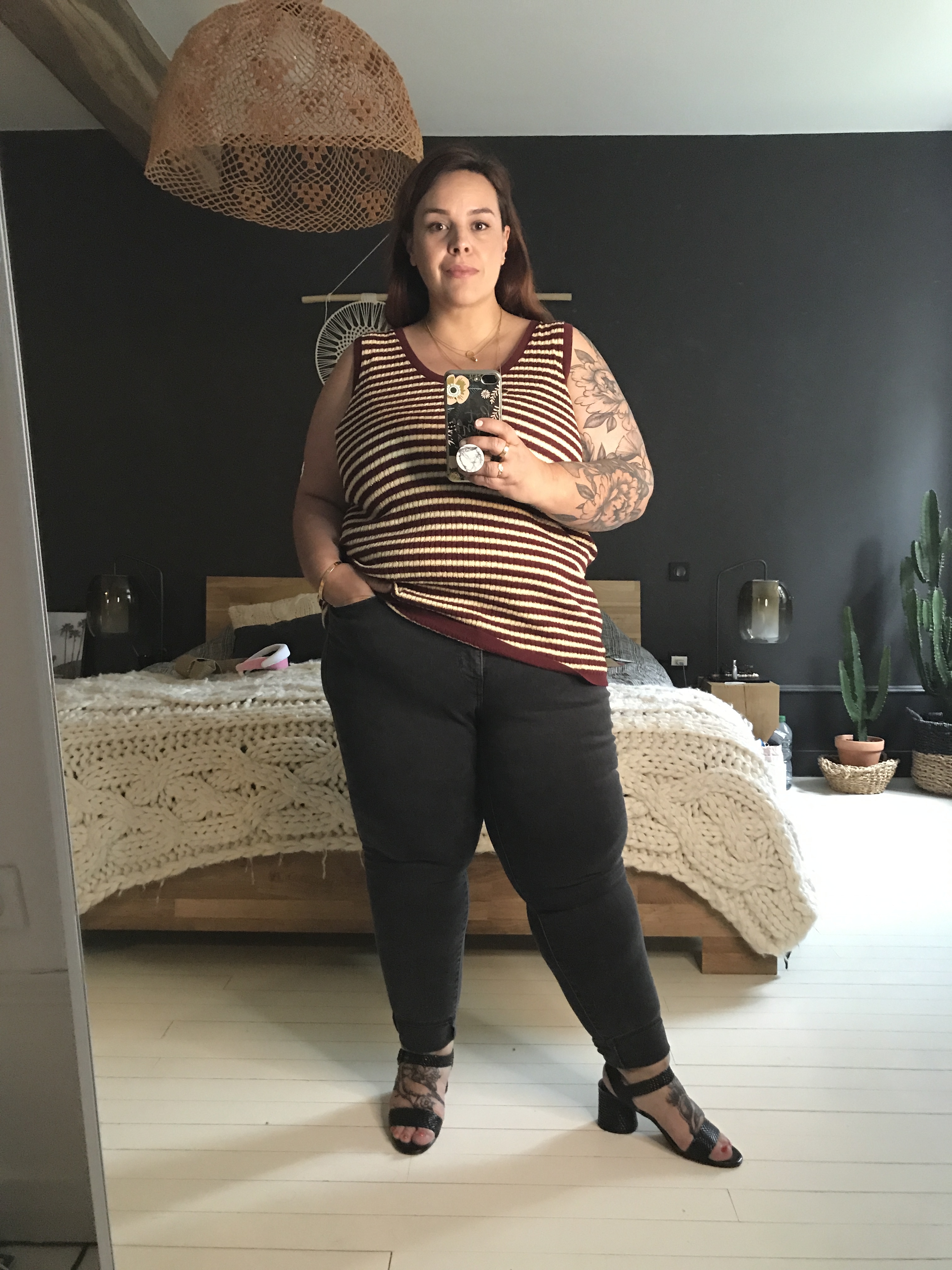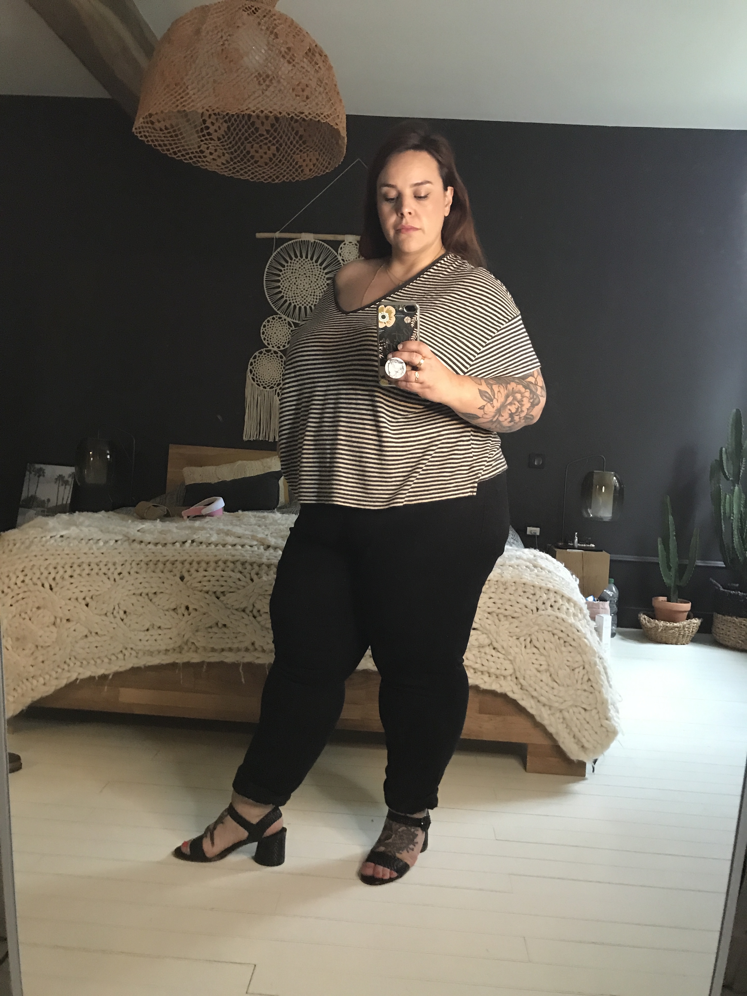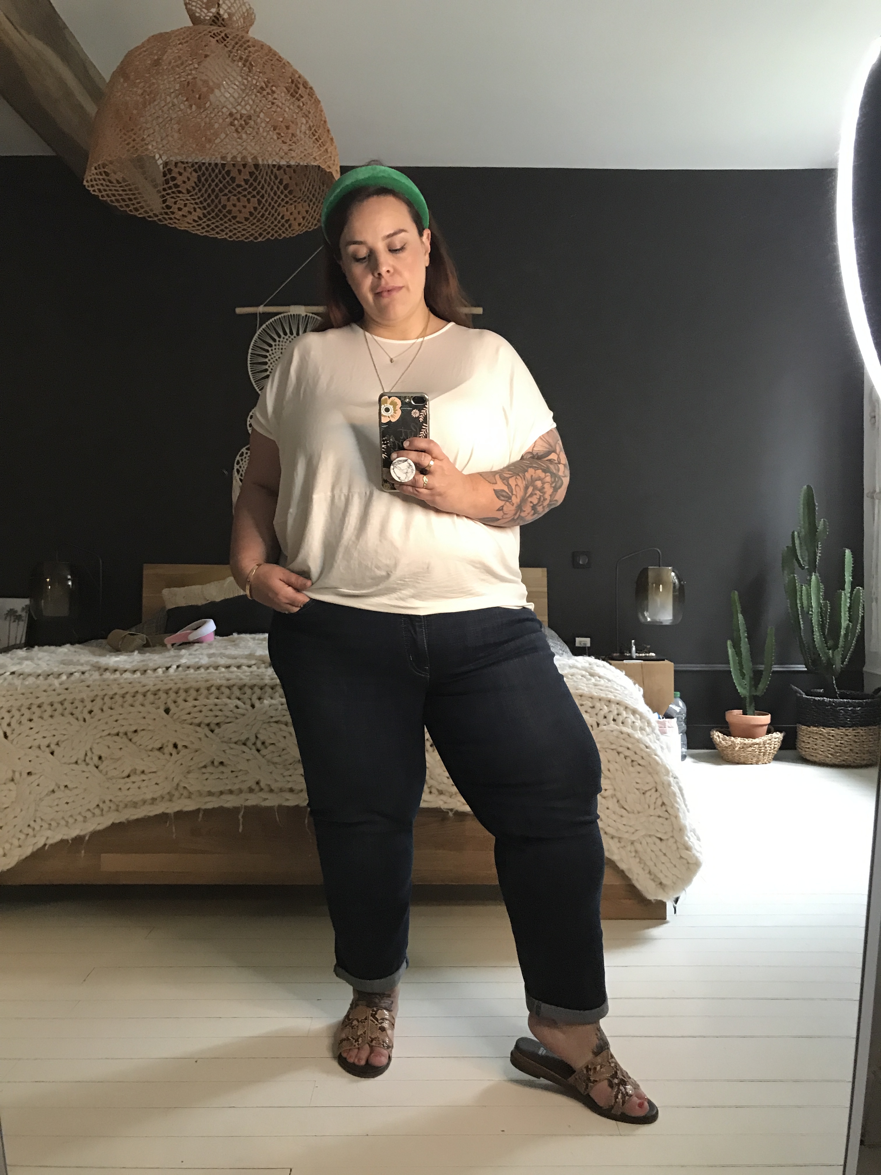 Côté taille j’ai également pris ma taille habituelle en jean soit 22W, mais j’aurai pu prendre une taille au-dessus pour un effet plus loose et plus proche de la coup boyfriend. Mais avec ma morphologie je sais qu’il aurait été beaucoup trop grand à la taille.