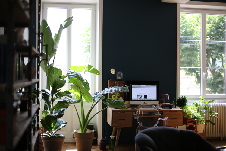 J’avais envie de pouvoir travailler entourée de plantes vertes, certaines gigantesques, d’autres plus petites et variées par leurs feuillages. Et je savais que cela allait enfin être possible dans le bureau que je me suis aménagé dans mon vaste séjour de 60m2. Plus grand que mon premier appartement parisien.