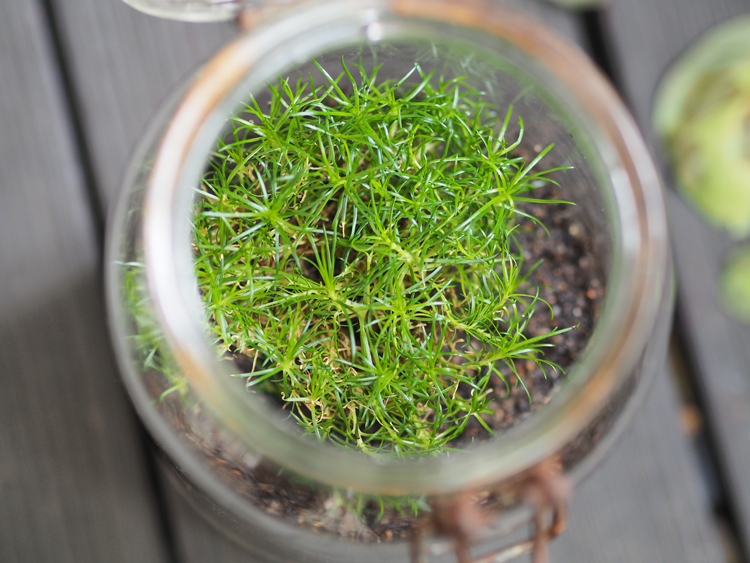Du coup le terrarium fermé qui se régule pratiquement tout seul me convient parfaitement! Le fait de nettoyer les parois du bocal me fera penser à humidifier un peu la terre et la boucle est bouclée!