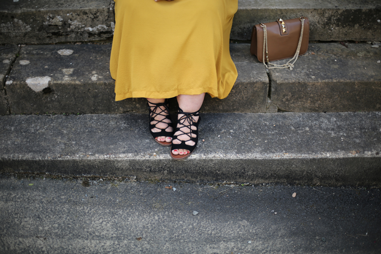 Trop belle! J’ai longuement hésité à acheter ces sandales, mais elles baillent aux chevilles sur moi, et comme tu l’as dit, si ce n’est pas parfaitement ajusté, ce n’est pas très joli. J’adore ta robe aussi!