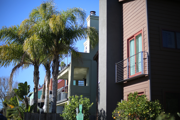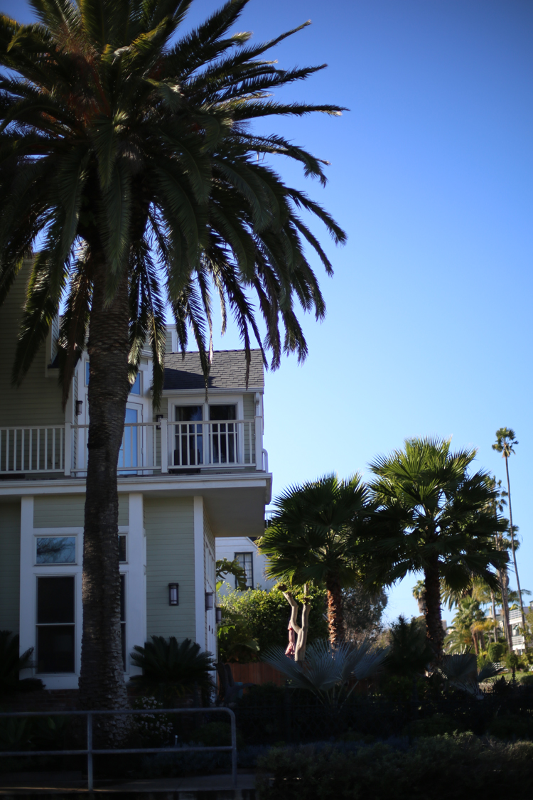 Il faut savoir que les canaux de Venice sont inspirés de ceux de Venise, c’est Abbot Kinney qui en fit la reproduction début des années 1900, on pouvait même circuler en gondole. Si une grande partie des canaux a été détruite, aujourd’hui il en reste une dizaine qui sont désormais classés au registre des Monuments Historiques en 1982. Aujourd’hui il y a de sublimes villas qui bordent les canaux, les habitants sont très respectueux du lieu et je n’ai jamais vu autant de beaux jardins bordés de cactus! Un régal pour les yeux.