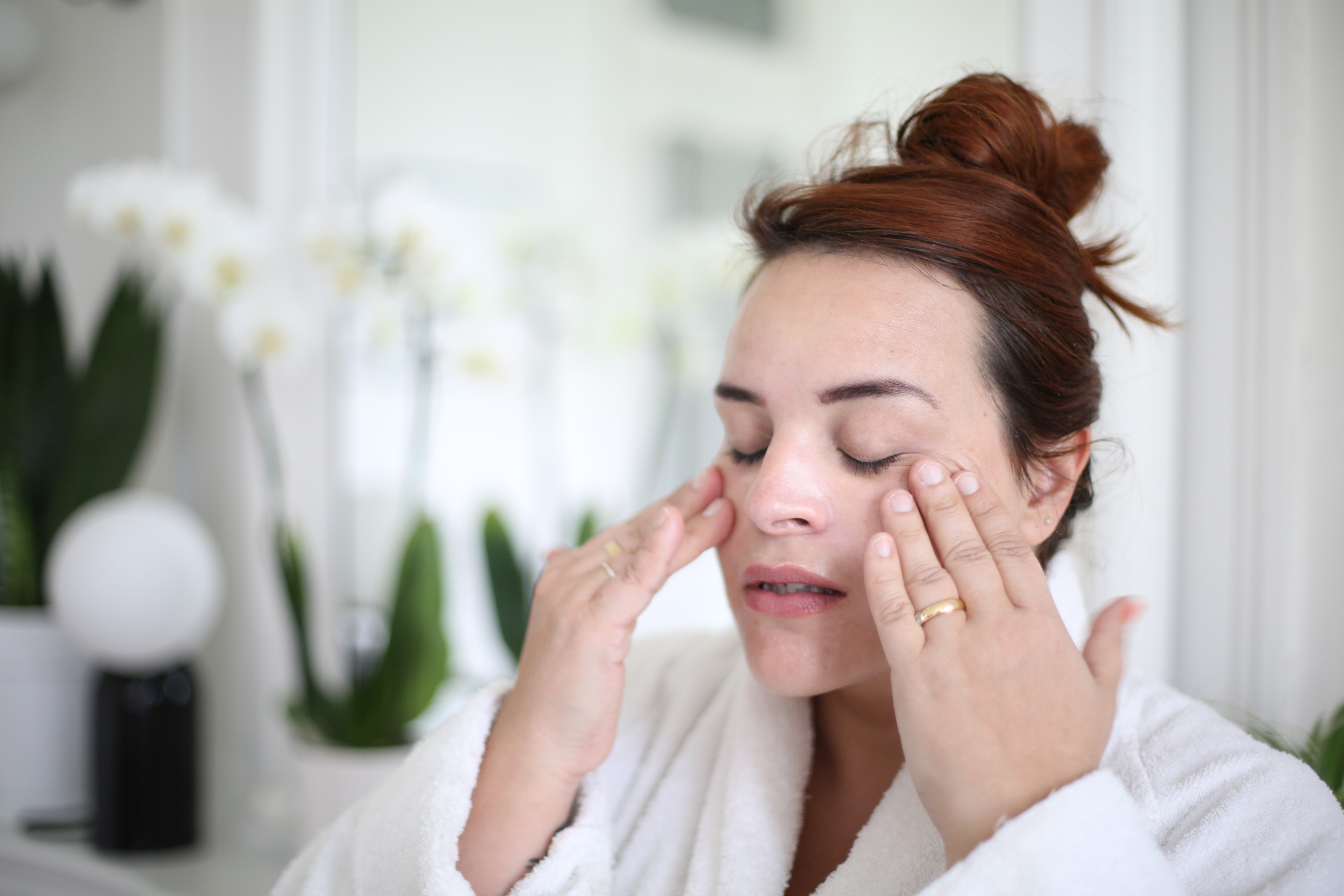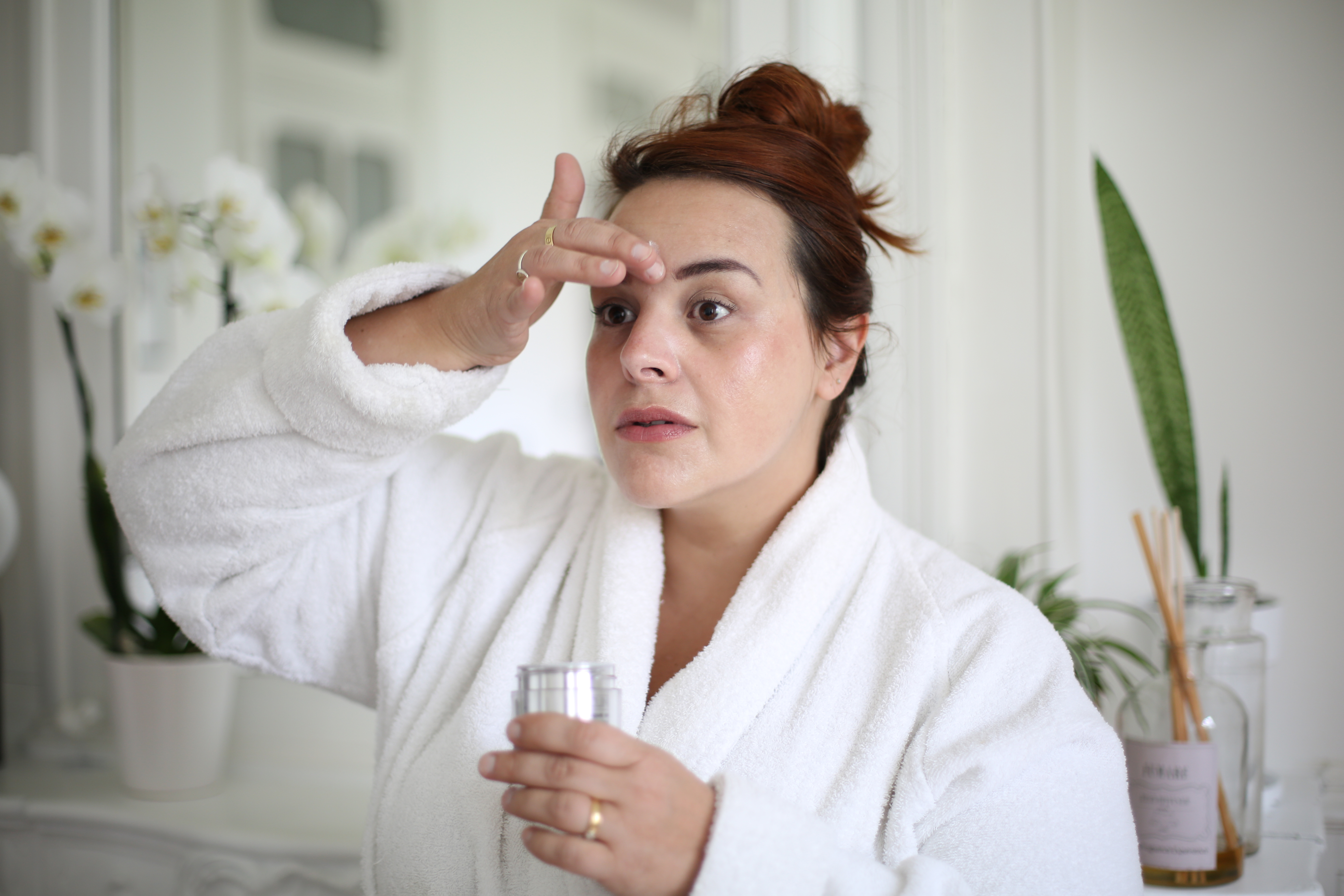 Le matin, je vaporise mon visage avec un peu d’eau thermal puis j’applique le sérum avant de me brosser les dents, car j’aime que le produit soit totalement absorbé avant d’appliquer une crème de jour. Je vous raconte un peu ma vie mais quand je travaille chez moi, j’en profite pour me maquiller très peu, les soins du matin sont donc primordiaux. Juste avant d’emmener mes enfants à l’école j’applique ma crème de jour. Comme c’est une crème qui assez riche et qu’elle contient une protection solaire, je trouve qu’il lui faut un peu de temps pour être assimilée par la peau, je vous conseille de l’appliquer quelques temps avant de vous maquiller.
