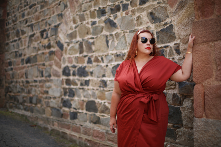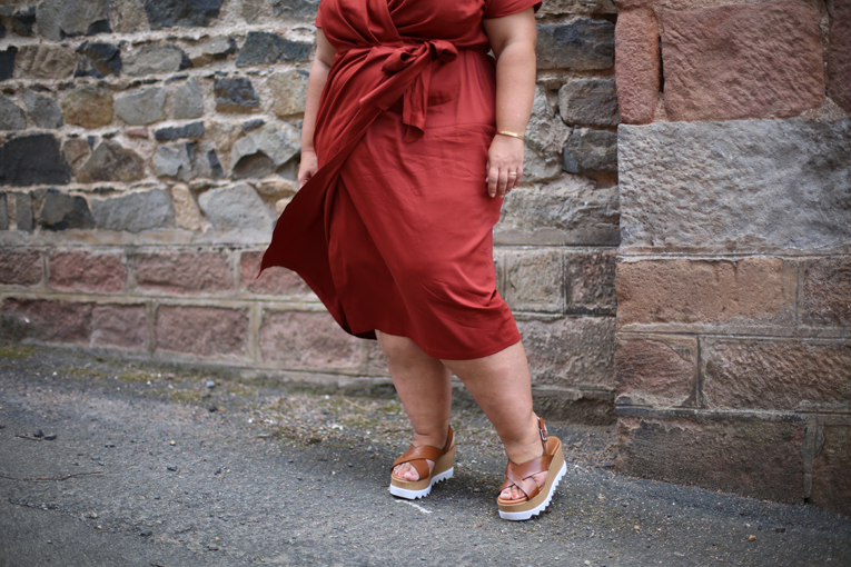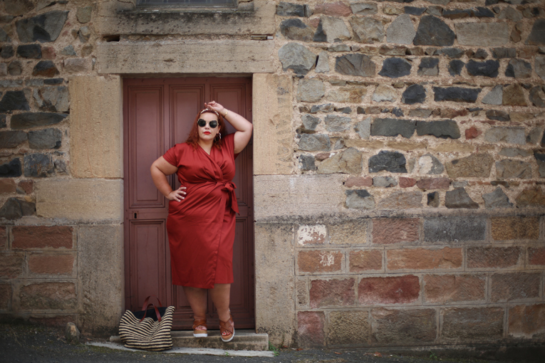 Jolie robe. Coupe et couleur rouille au top du chic.
