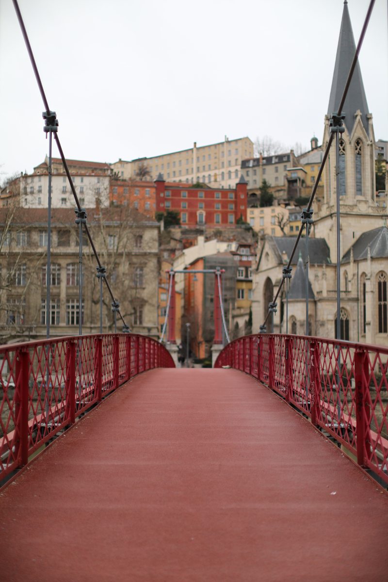 De passage à Lyon, j’en ai profité pour shooter sur cette jolie passerelle rouge, la passerelle Saint Georges.