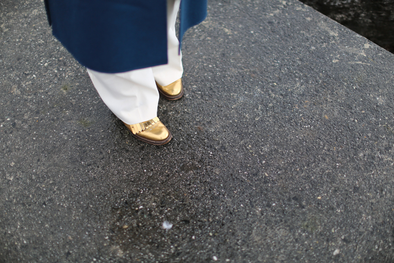 La petite touche perso ce sont les derbies dorées, qui sont un peu ma signature. A chaque saison sa paire de chaussures dorées. D’ailleurs je vous ai fait une petite sélection de chaussures qui brillent juste en-dessous.