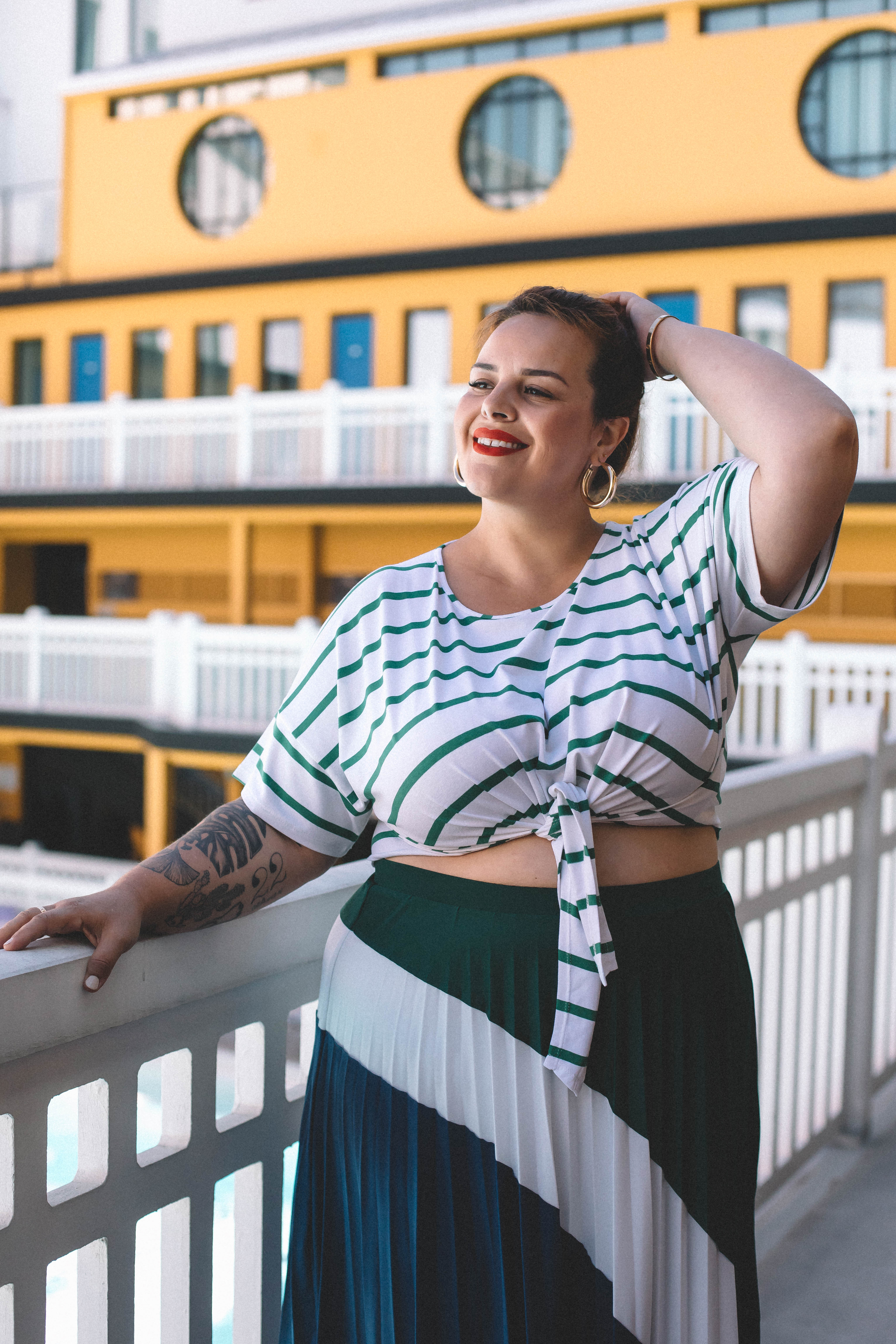 Archi fan de l’association crop-top marinière et de la jupe longue à motif géographique. Je ne suis pas encore prête à tenter le crop-top mais avec tes looks, l’envie d’essayer devient de plus en plus forte. Alors qui sait peut être que d’ici le mois prochain je me laisserai tenter !