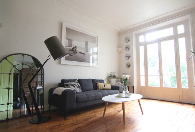 Today, let’s focus on my living-room, I’m dividing up the presentation of my apartment so it will be more digestible for you. It’s a big living-room open on the dining-room and the kitchen, I had all the dividing walls taken down.