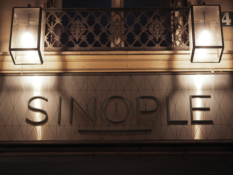 Je vais faire ma cuistre de service: “sinople” est le nom de la couleur verte, en héraldique, autrement dit, dans les blasons. Et en effet ce restau semble bien verdoyant et frais…
