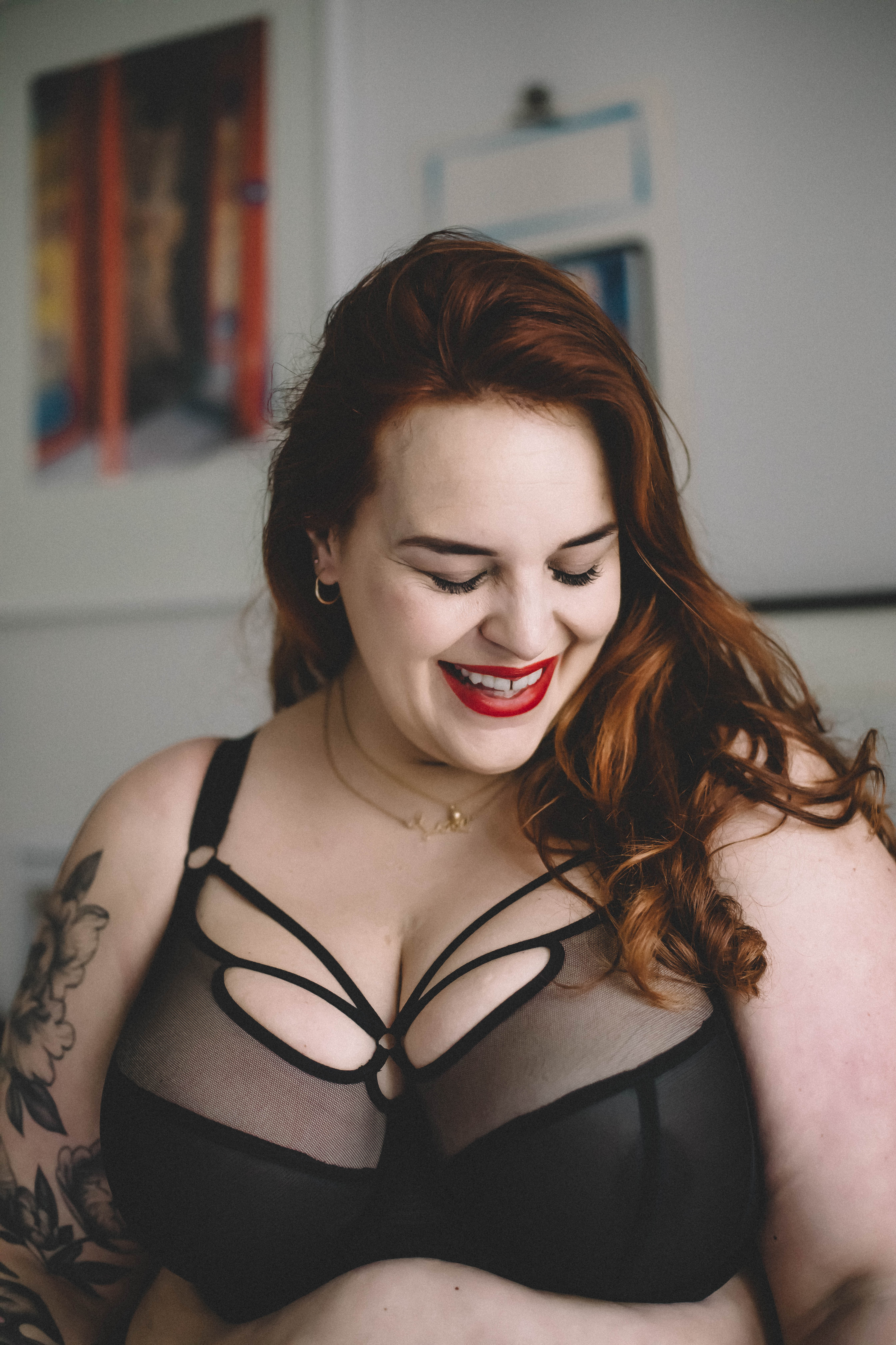 Super jolies photos Stephanie! Merci pour tout ce que tu fais pour les femmes rondes. Des centaines de femmes te sont reconnaissantes! Il y a des jours où c’est plus difficile de s’accepter et il devient très facile de se laisser emporter par la morosité. Mais de voir cette belle humeur et le théâtre que tu mets dans tes photos, ça inspire. Le choix du lieu du shooting est fantastique et colle à la personnalité visuelle du blog. Félicitations pour le nouveau site web. Très joli concept et beaucoup plus facile de retrouver les anciens posts. Si je peux me permettre, les femmes qui ont de moins bons yeux trouveront peut-être le texte plus petit et plus pâle, un peu plus difficile à lire….. :)