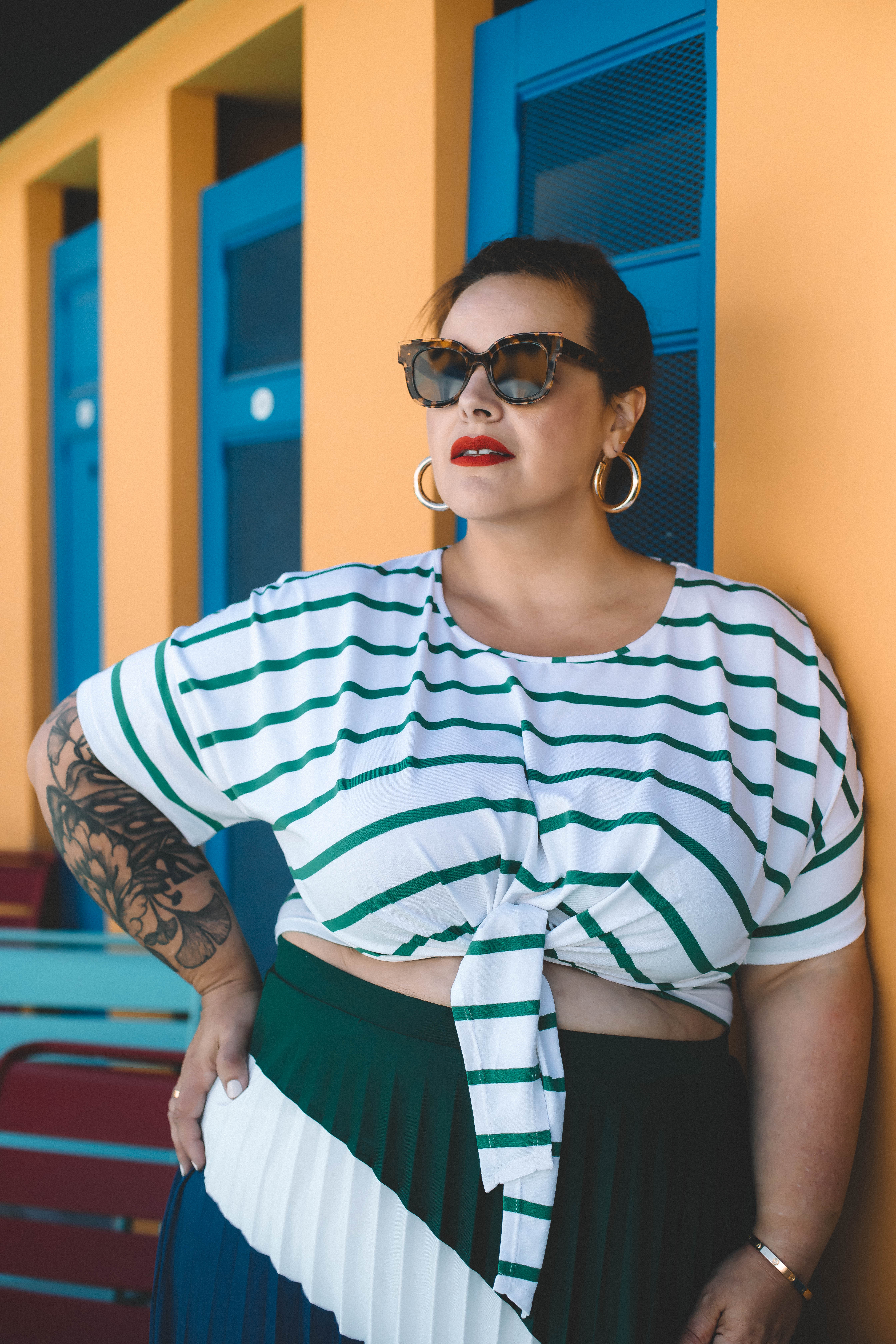 Archi fan de l’association crop-top marinière et de la jupe longue à motif géographique. Je ne suis pas encore prête à tenter le crop-top mais avec tes looks, l’envie d’essayer devient de plus en plus forte. Alors qui sait peut être que d’ici le mois prochain je me laisserai tenter !