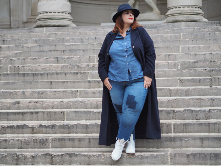 To play even more with the contrasts, I took out one of my new blue velvet coats, very oversized.