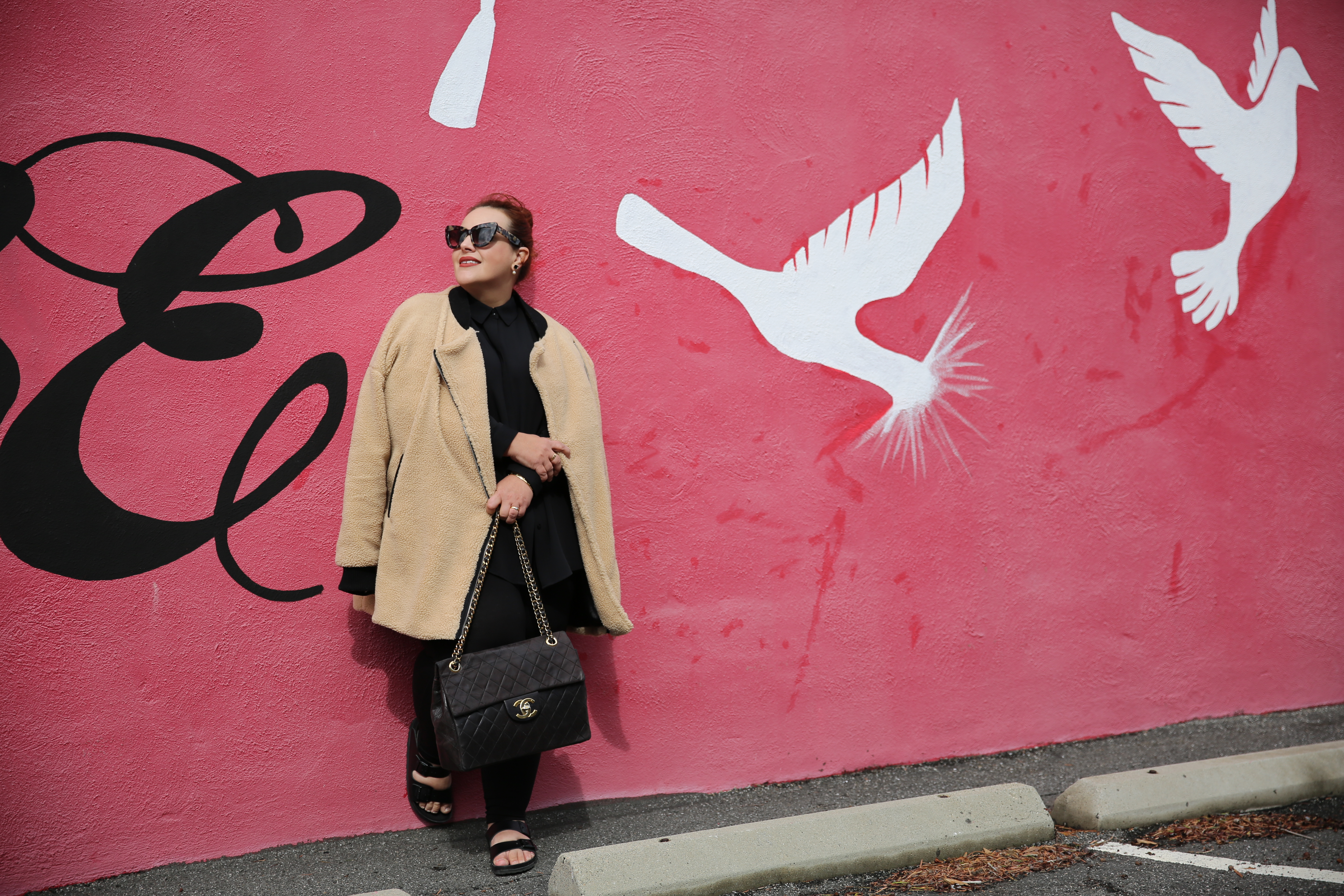 Manteau mouton One Day Plus – Lunettes Valley Eyewear – Sandales Birkenstock