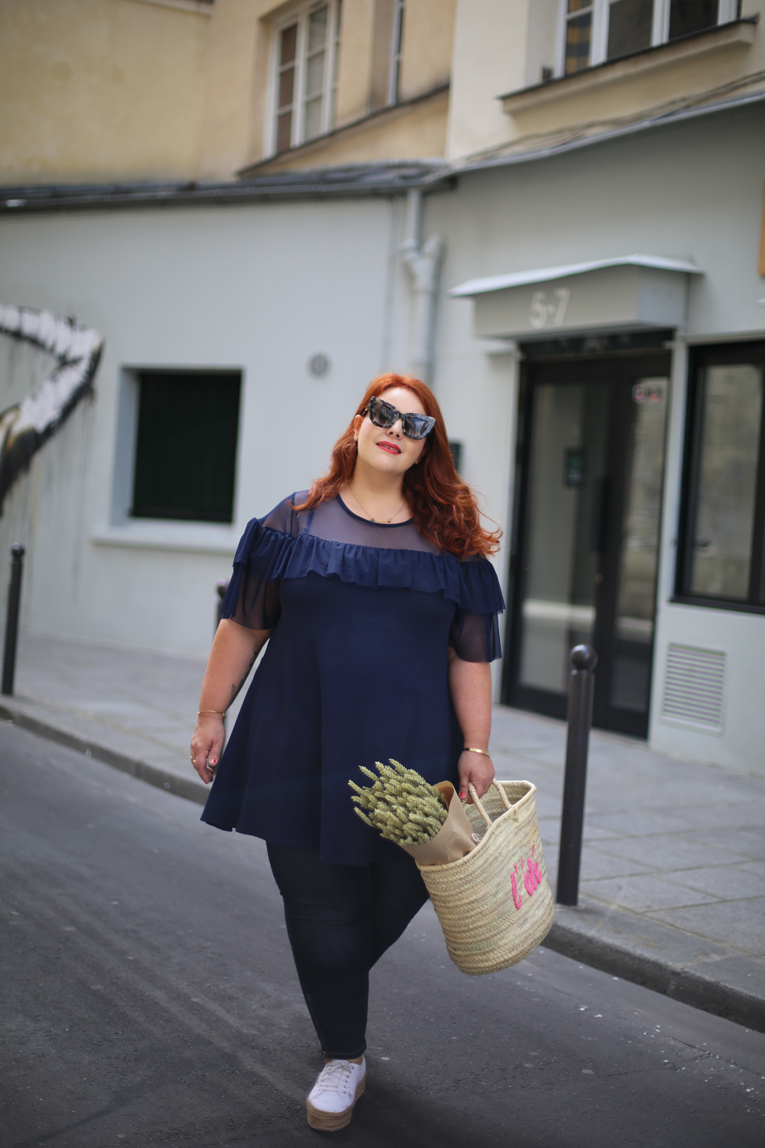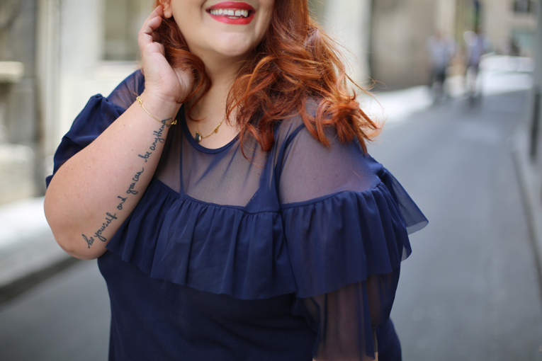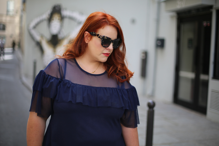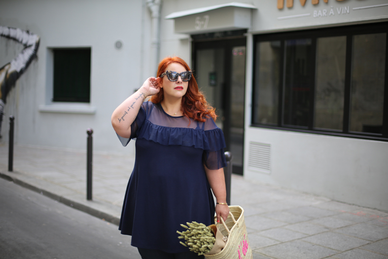 j’adore cette tenue tellement féminine mais en même temps pratique!et ce bleu avec ta couleur de cheveux c’est top!