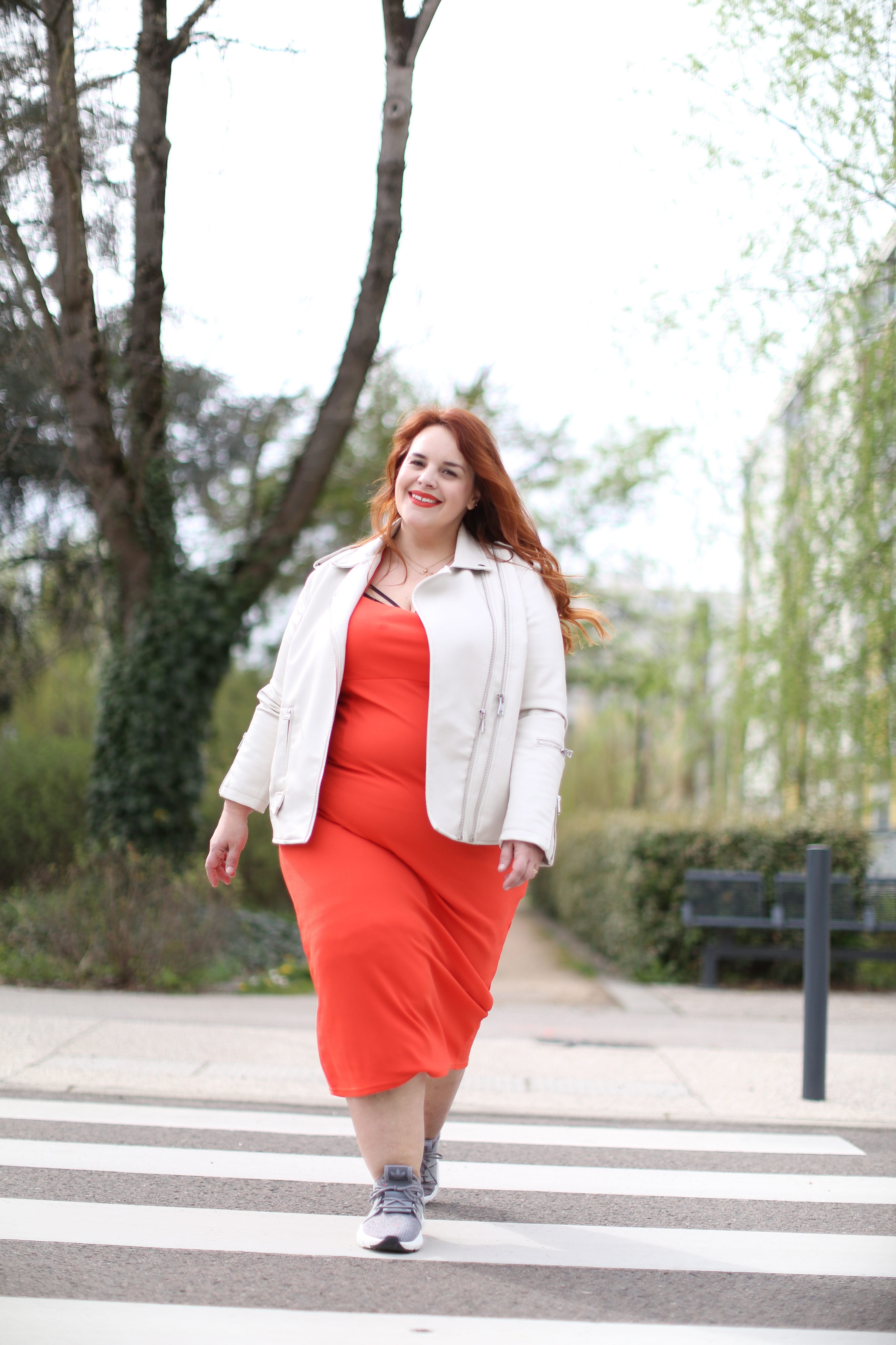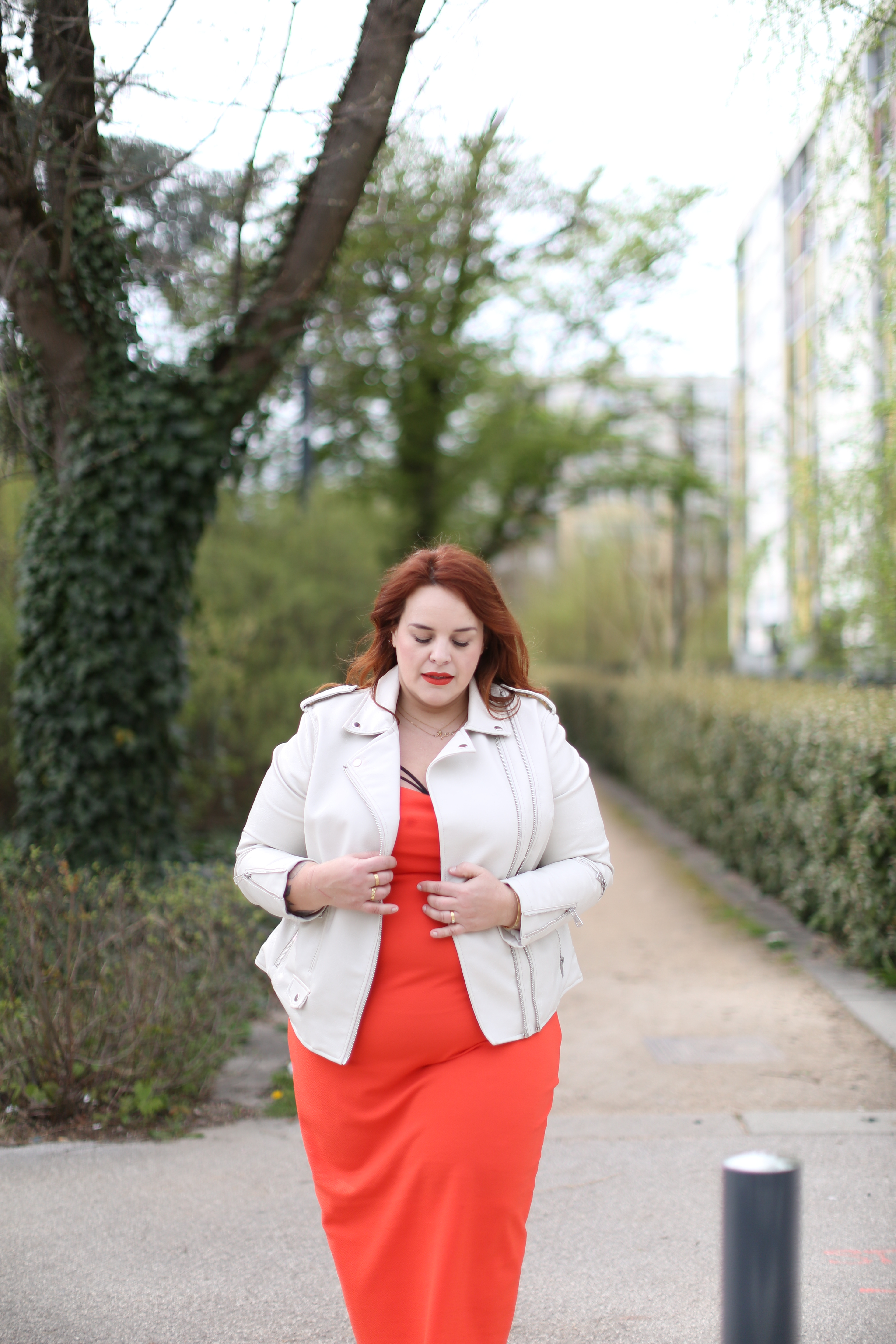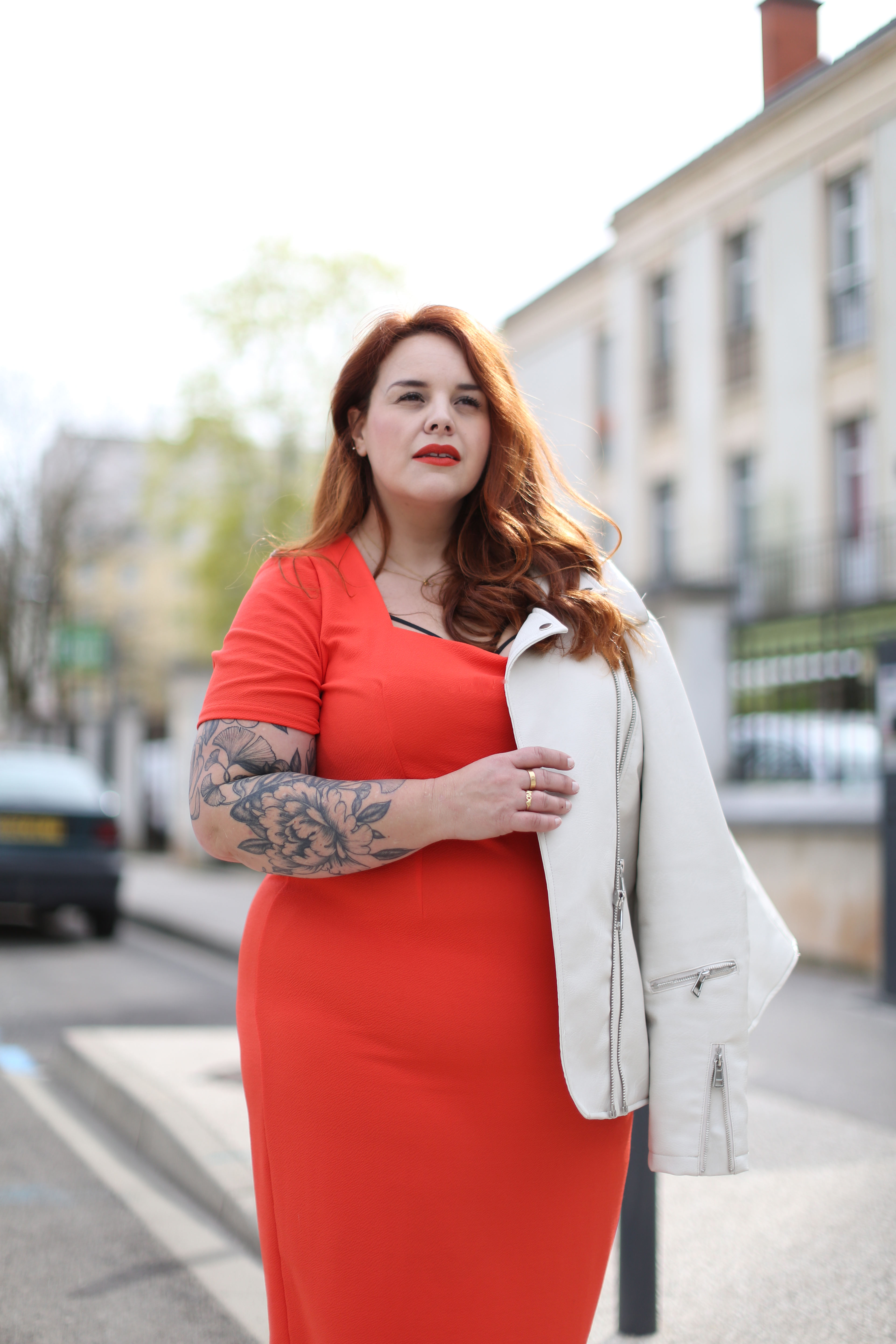 J’adore la couleur de cette robe, c’est exactement la teinte que je porte en rouge à lèvres habituellement. Un rouge orange flamboyant qui donne bonne mine!